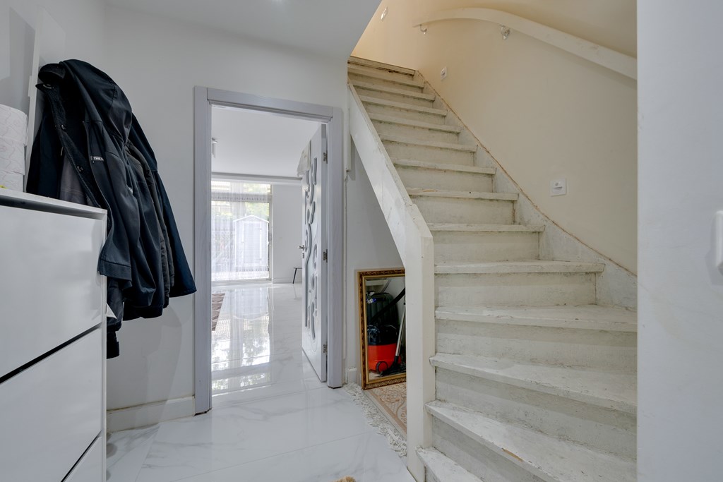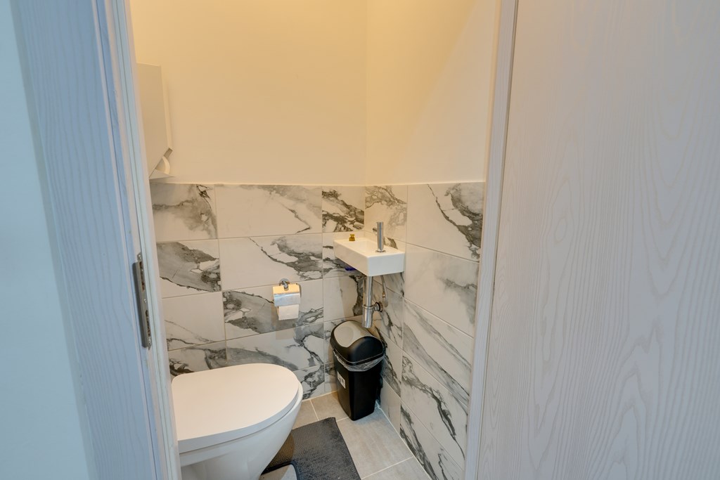 The first floor offers three spacious bedrooms, all finished with neat laminate flooring. The bathroom is modern and stylish, featuring a walk-in shower, washbasin unit, and a second toilet. Thanks to the recent renovation, this floor feels fresh, contemporary, and completely move-in ready.