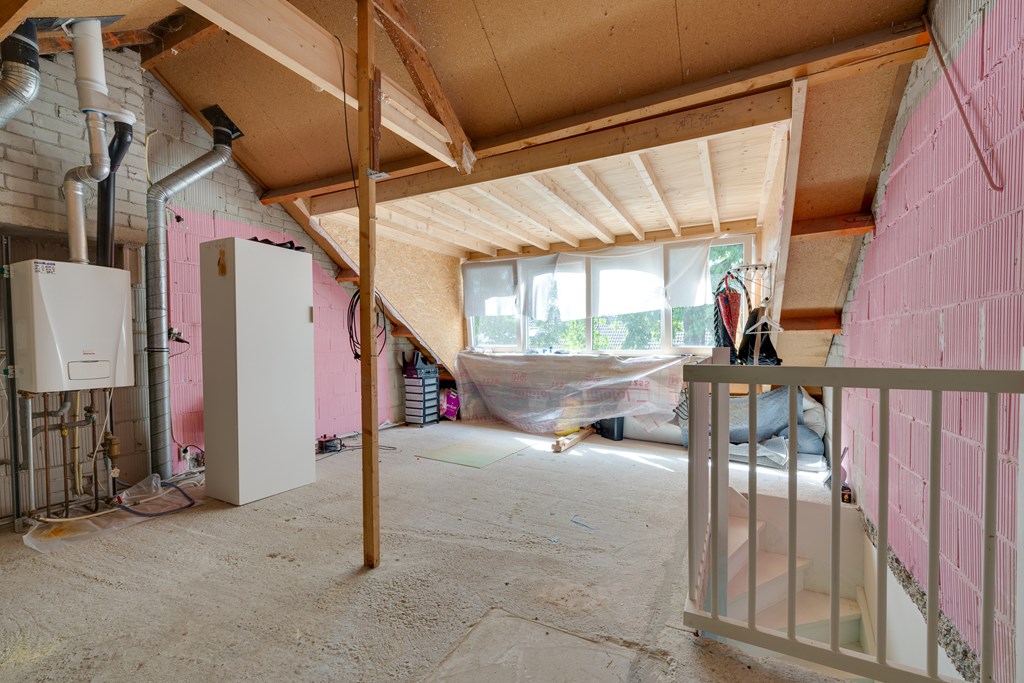 The second floor is accessible via a fixed staircase. In 2024, a large dormer window was installed across the entire width, creating an impressive amount of space and light. The finishing touches (paneling) still need to be completed, but this gives you the opportunity to design this space entirely to your liking – whether as an extra bedroom, home office, or hobby room.