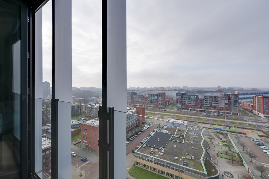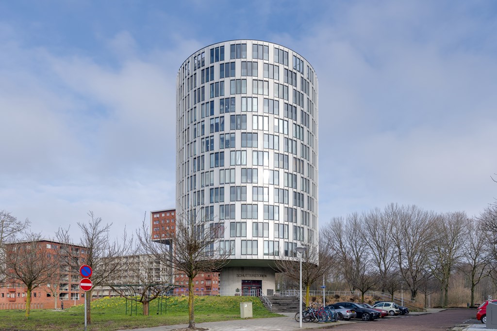 In de iconische Schutterstoren bieden wij op de 11e verdieping dit prachtige en instapklare appartement te koop aan. Het gebouw is een architectonisch hoogstandje en bekroond met diverse ontwerpprijzen. De Schutterstoren beschikt over een afgesloten entree met automatische schuifdeuren, een intercom met videofooninstallatie, twee liften, een gemeenschappelijke fietsenberging en een afgesloten parkeergarage.