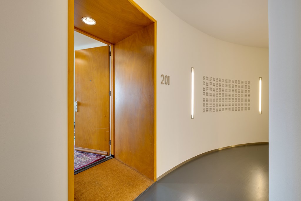 Via de afgesloten entree met video-intercom bereik je met een van de twee liften – of via het trappenhuis – de 11e verdieping.