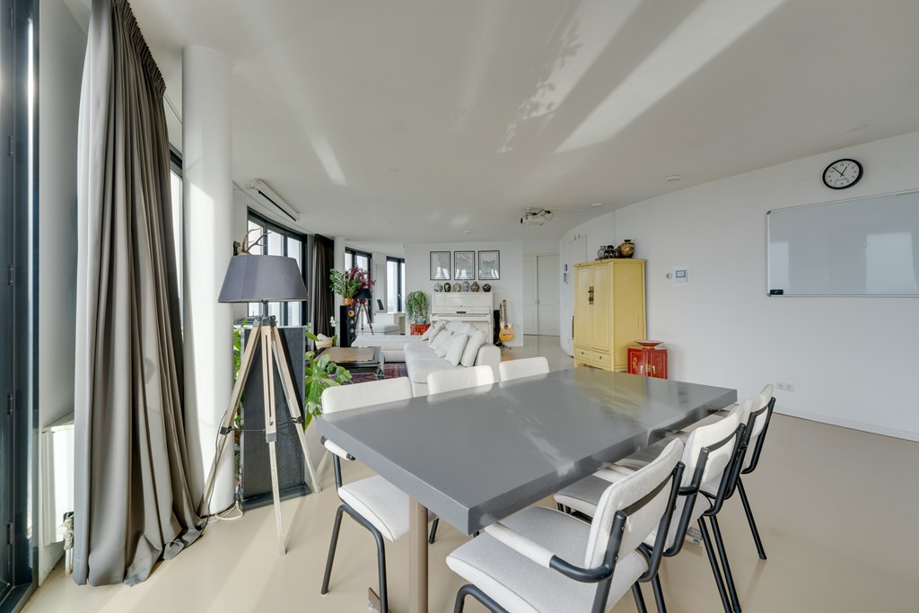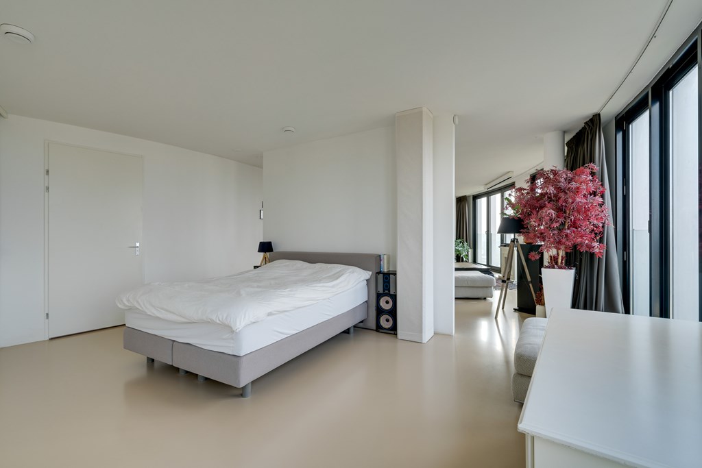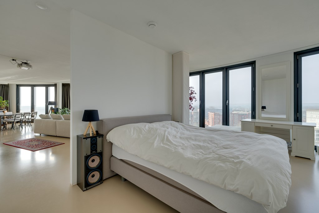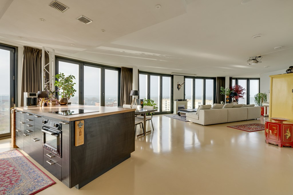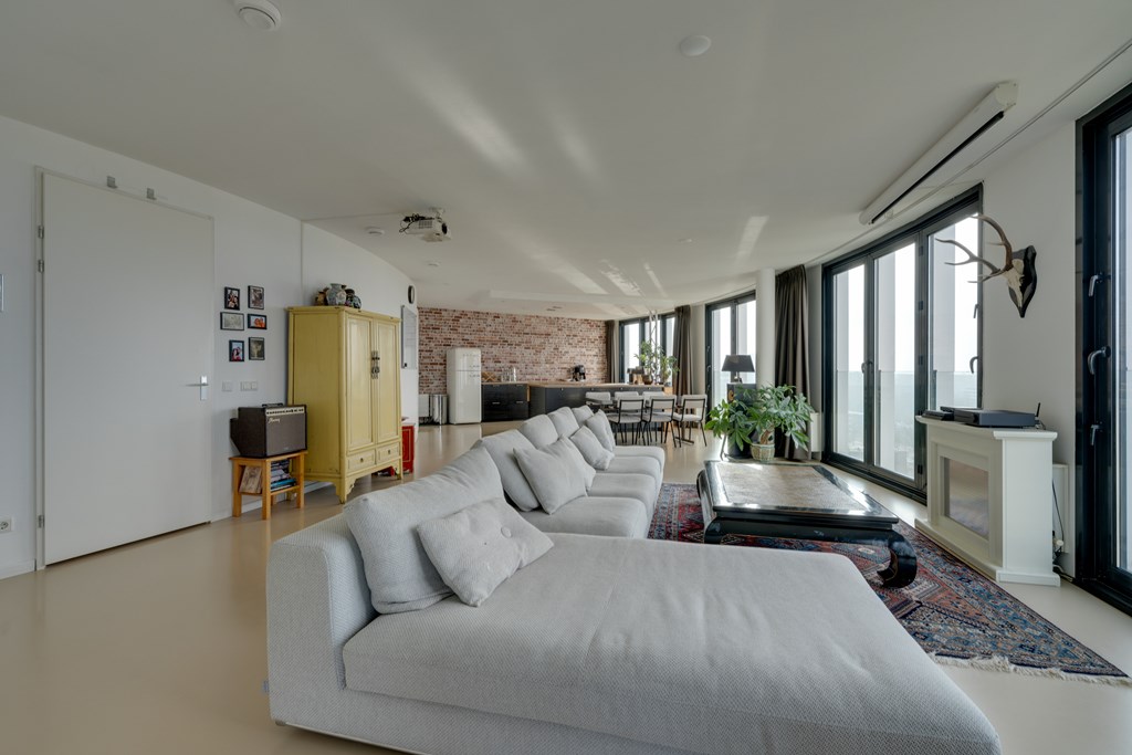 Het appartement kan desgewenst relatief eenvoudig naar eigen inzicht worden ingedeeld. Zo is het mogelijk om meerdere afgesloten slaapkamers te realiseren. De huidige eigenaren hebben bewust gekozen voor een loftindeling om optimaal te profiteren van het panoramische uitzicht. De royale leefruimte biedt daglicht en vrij uitzicht in alle richtingen, wat zich regelmatig vertaalt in adembenemende zonsondergangen.