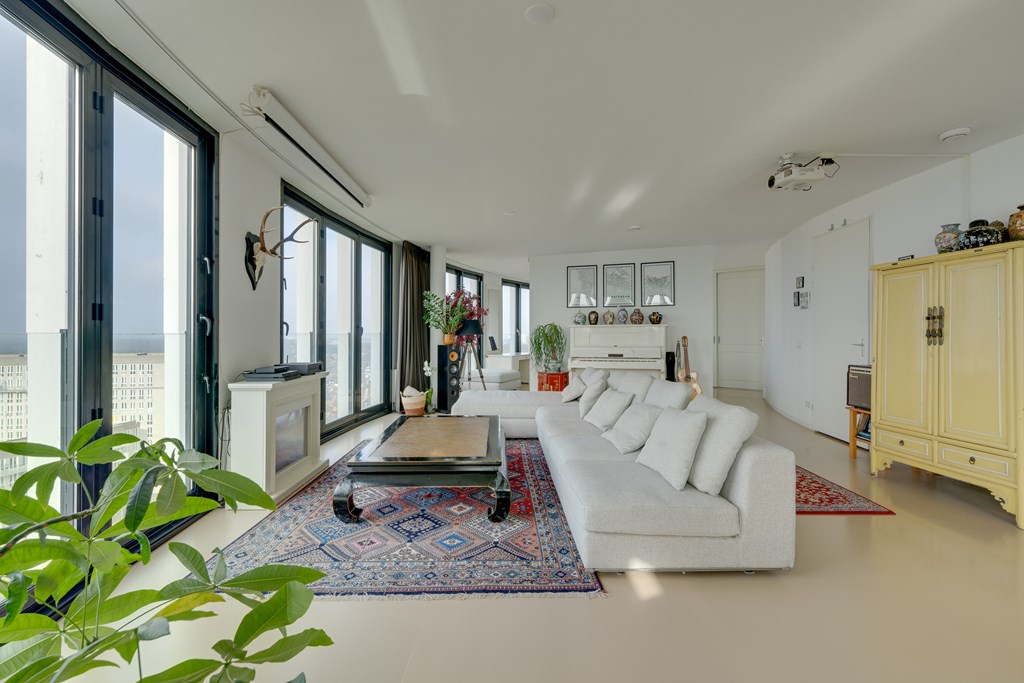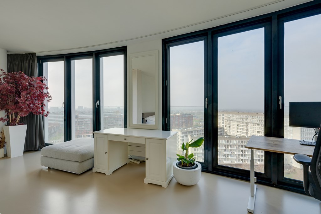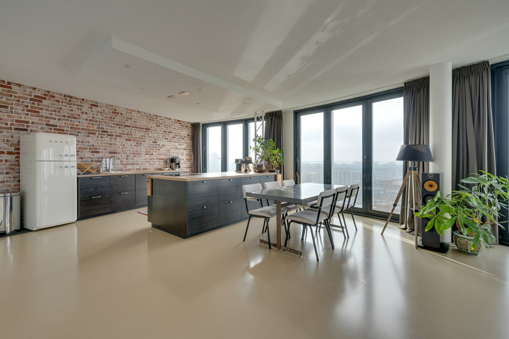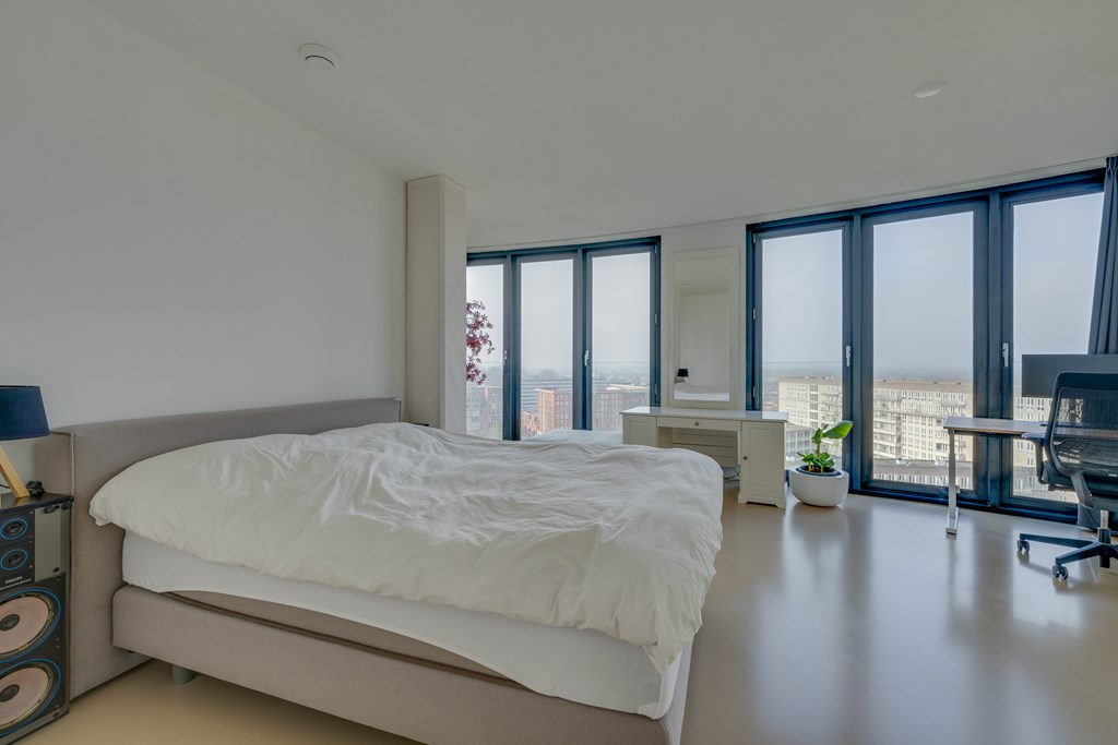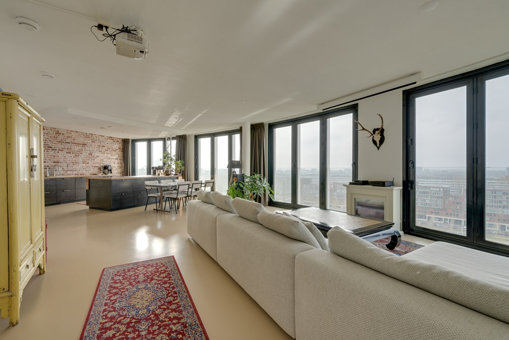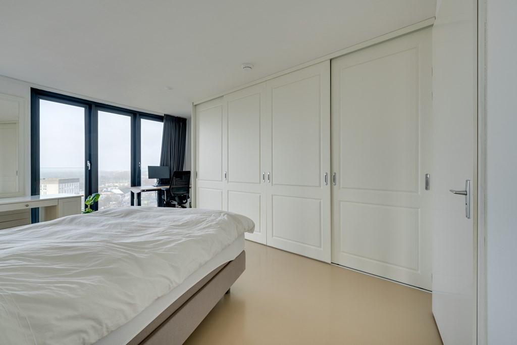 Het appartement kan desgewenst relatief eenvoudig naar eigen inzicht worden ingedeeld. Zo is het mogelijk om meerdere afgesloten slaapkamers te realiseren. De huidige eigenaren hebben bewust gekozen voor een loftindeling om optimaal te profiteren van het panoramische uitzicht. De royale leefruimte biedt daglicht en vrij uitzicht in alle richtingen, wat zich regelmatig vertaalt in adembenemende zonsondergangen.