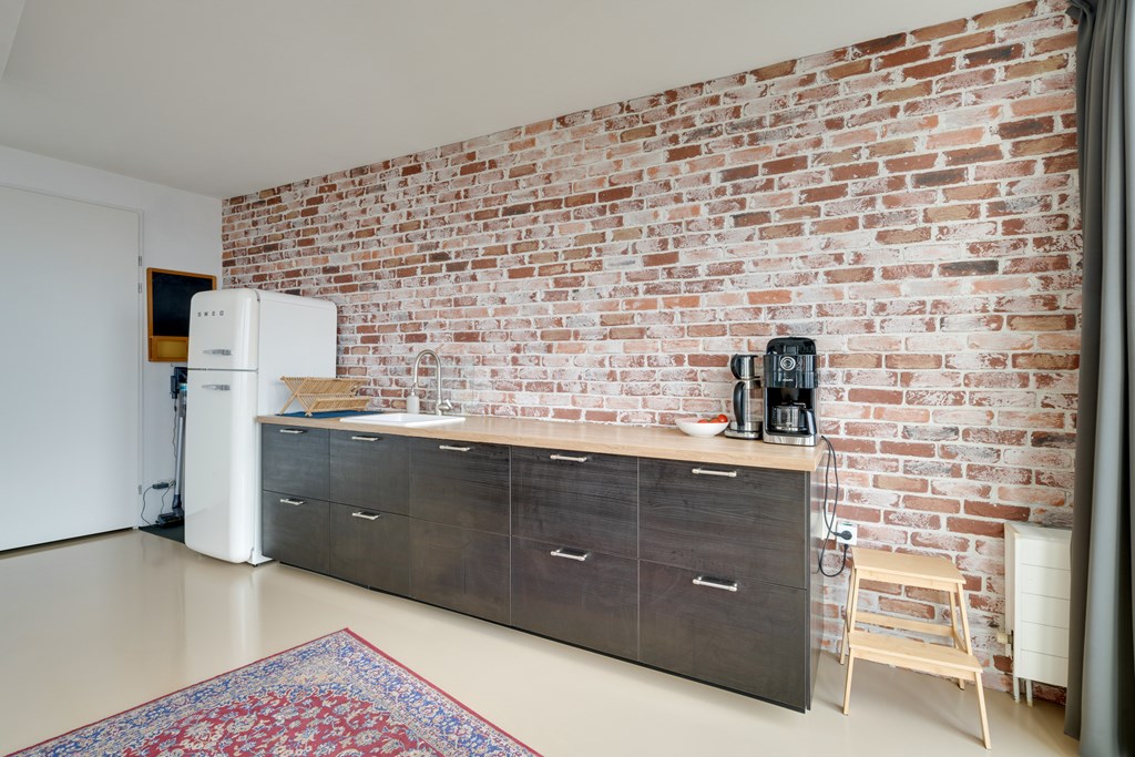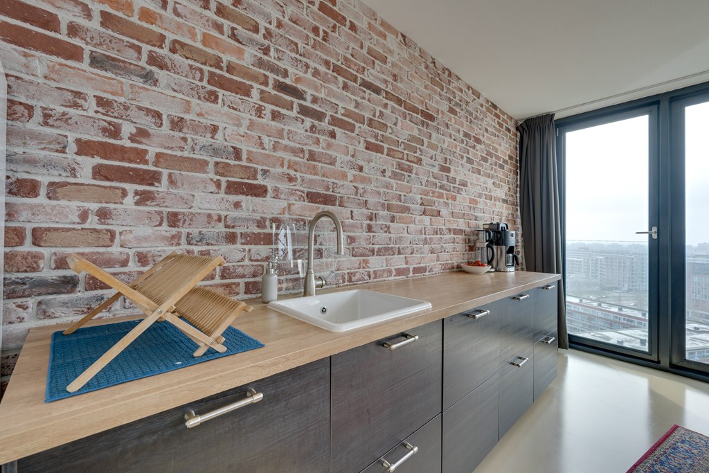 You enter the apartment through the spacious hallway, which includes a modern toilet. From the hallway you access the generous and bright living area. Currently designed as one large open space, a substantial partition wall separates the living area from the bedroom. Large windows, no fewer than 6 doors and 3 folding (accordion) doors, and the spectacular views create a truly unique living experience. This is something you must see for yourself. Thanks to its southwest orientation, you can fully enjoy the afternoon and evening sun.