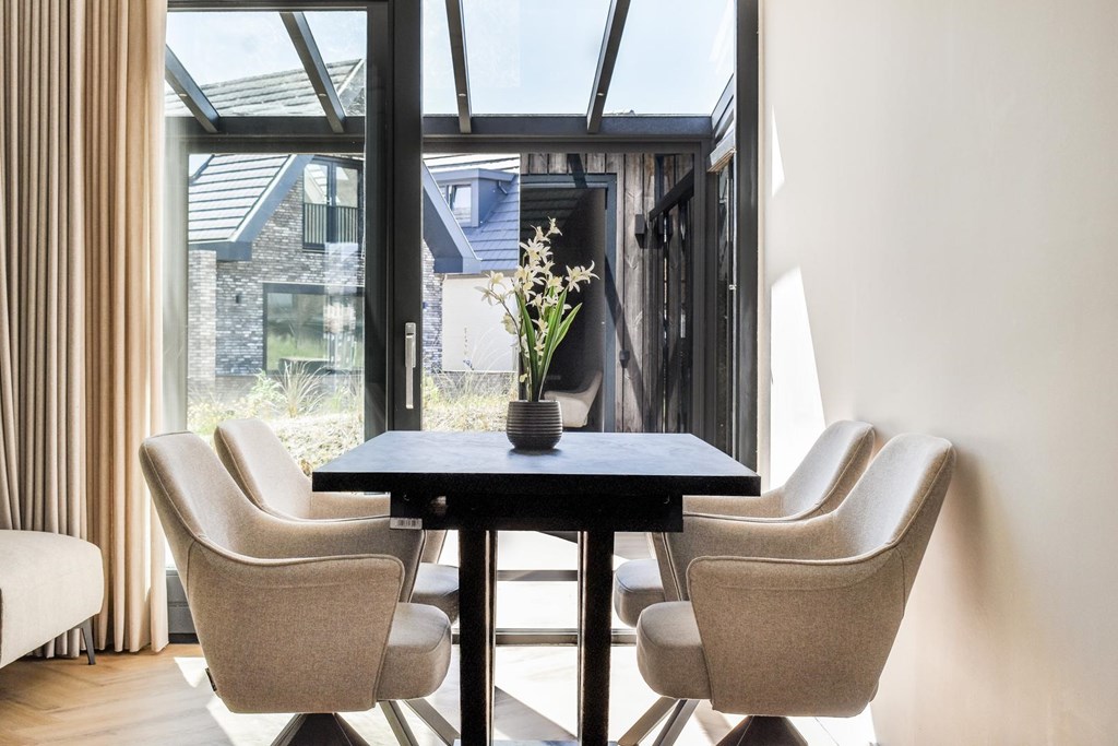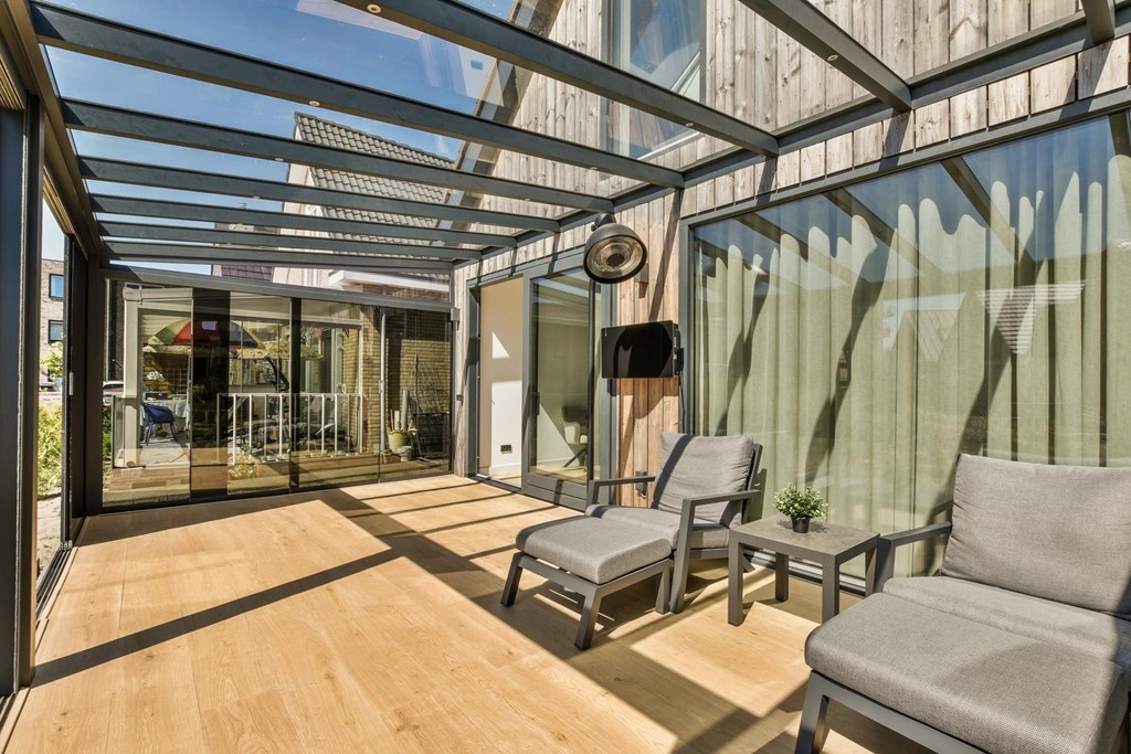 De serre is absoluut het pronkstuk van deze woning: een fijne extra leefruimte waar je het hele jaar door kunt genieten. Zet de glazen deuren open en verbind binnen met buiten — met uitzicht op het groene parkje achter de woning. Of zit knus en warm binnen met de terrasheater aan; het kan allemaal.
