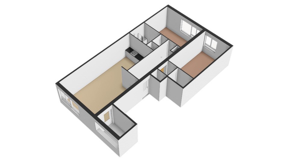 Aan de achterzijde bevinden zich twee ruime slaapkamers, beide met een prettig uitzicht op de groene omgeving.