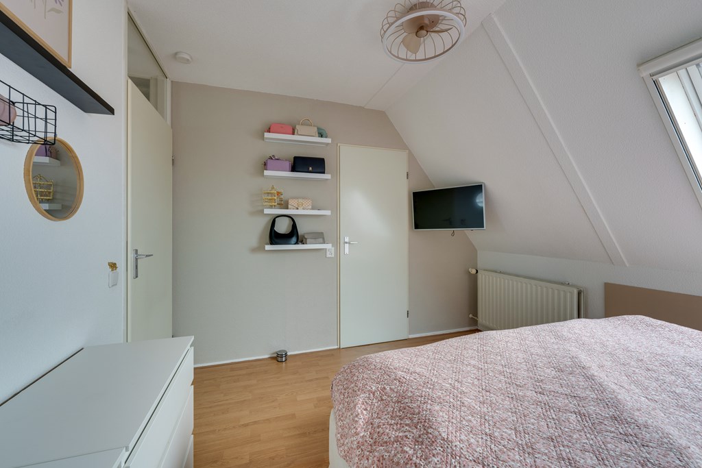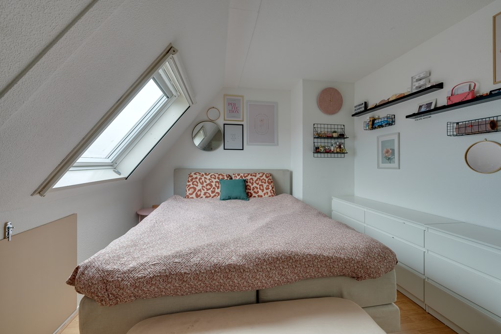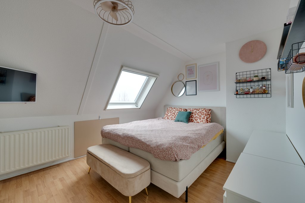 Via de vaste trap in de hal kom je op de overloop van de vierde verdieping. Vanuit de overloop zijn alle ruimten op deze verdieping te bereiken. Te beginnen met de twee riante slaapkamers. De slaapkamer aan de achterkant van de woning is voorzien van een dakvenster en aparte ruime inloopkast. Vanuit de tweede slaapkamer aan de voorzijde heb je een prachtig vrij uitzicht.