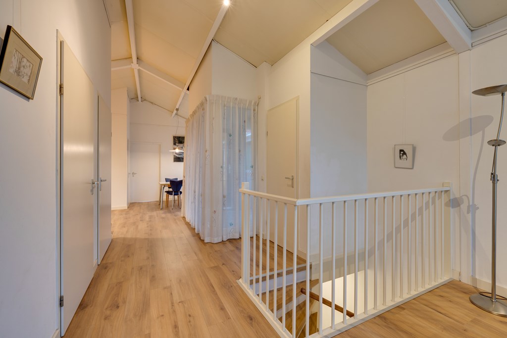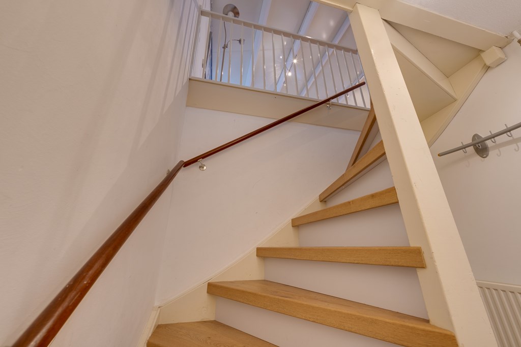 Via de gemeenschappelijke entree en de trap bereik je de eerste etage waar dit sfeervolle appartement zich bevindt. Bij binnenkomst kom je in de hal die toegang biedt tot alle vertrekken.
