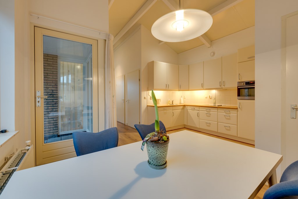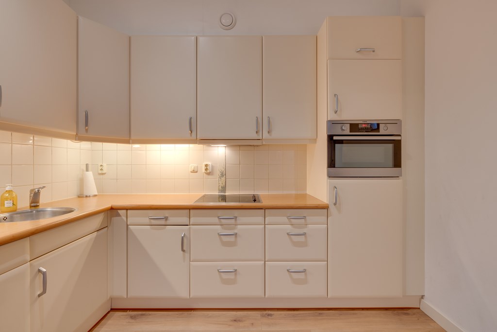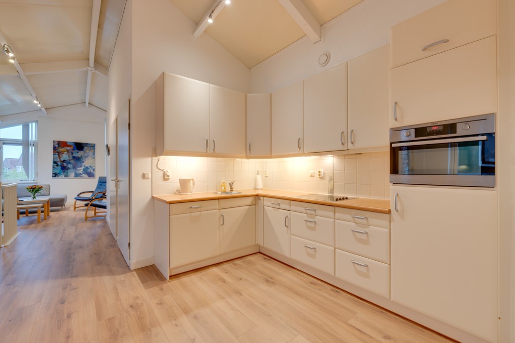 De moderne keuken is van alle gemakken voorzien en compleet uitgerust met hoogwaardige inbouwapparatuur. Je vindt hier een vaatwasser, afzuigkap, koelkast en een praktische combi-oven. Hierdoor is koken een waar genoegen en beschik je over alle apparatuur die je nodig hebt voor het bereiden van heerlijke maaltijden.