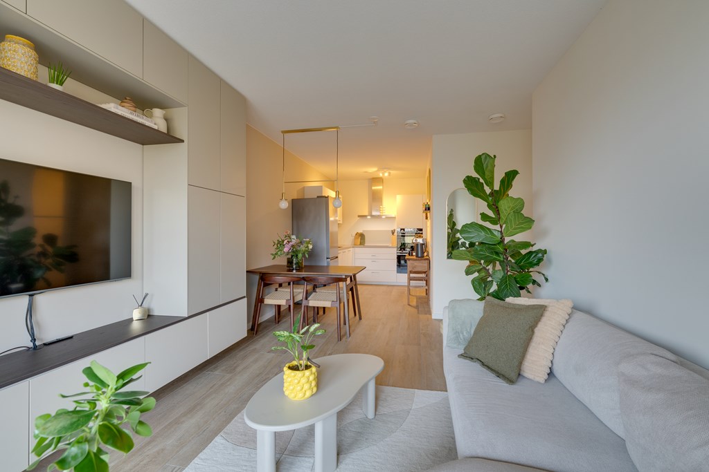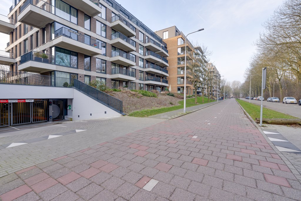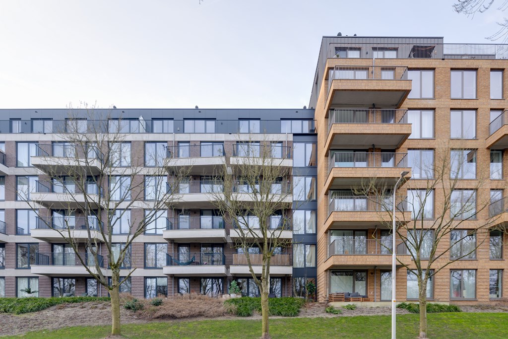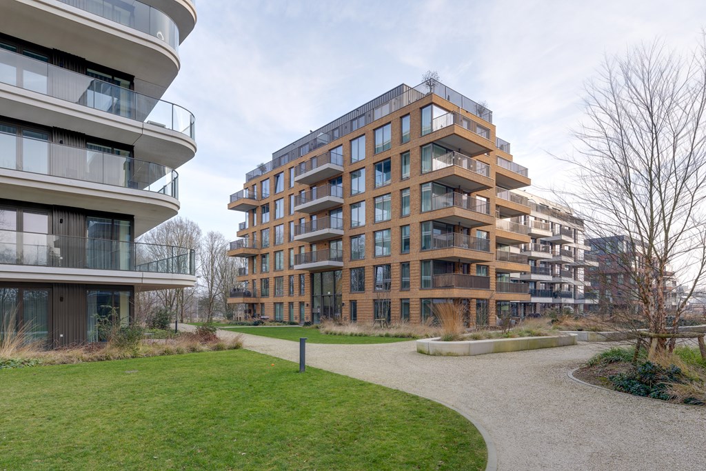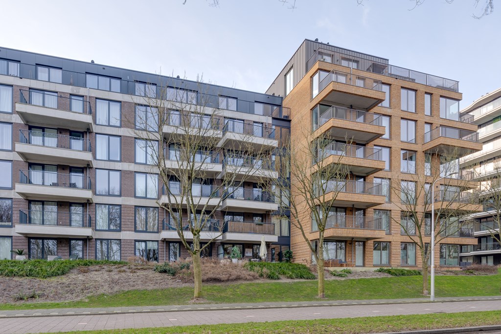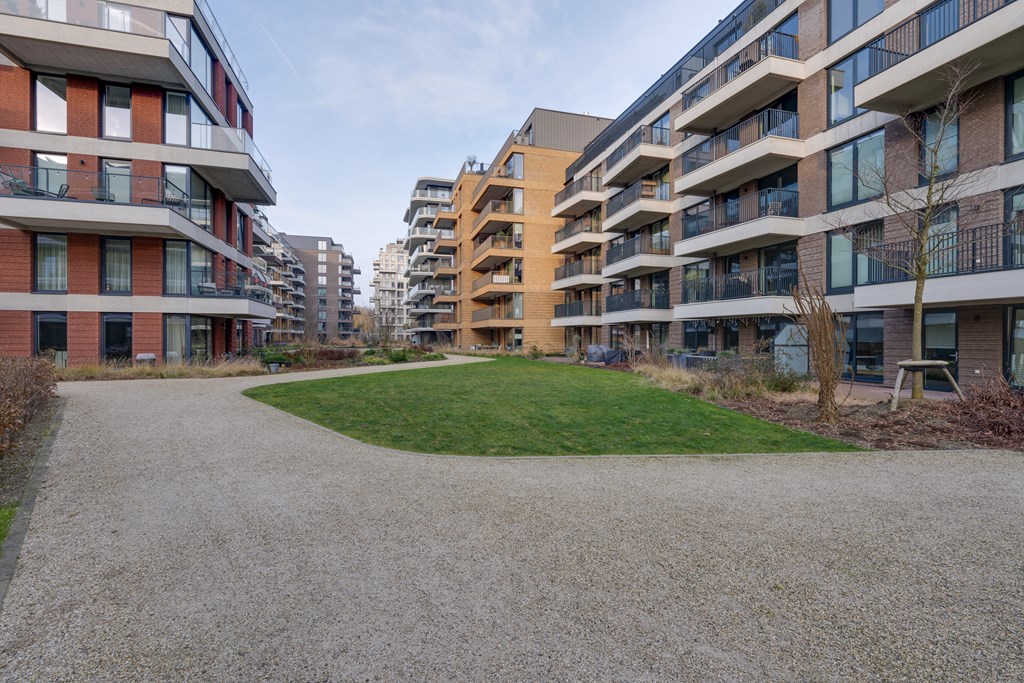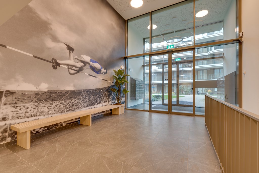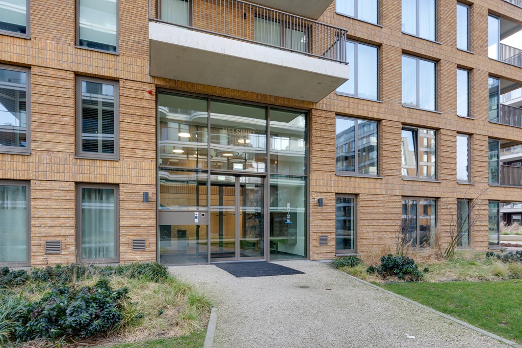 Het appartement ligt in het recent opgeleverde complex Helsinki wat deel uitmaakt van het Olympiade-project. Dit project omvat zeven moderne complexen, gesitueerd in een semi-openbaar park met entrees direct aan een groene binnentuin. Hier komt stedelijke levendigheid samen met natuurlijke rust. De sfeervolle binnentuin met sierwater zorgt voor een ontspannen en serene woonomgeving.