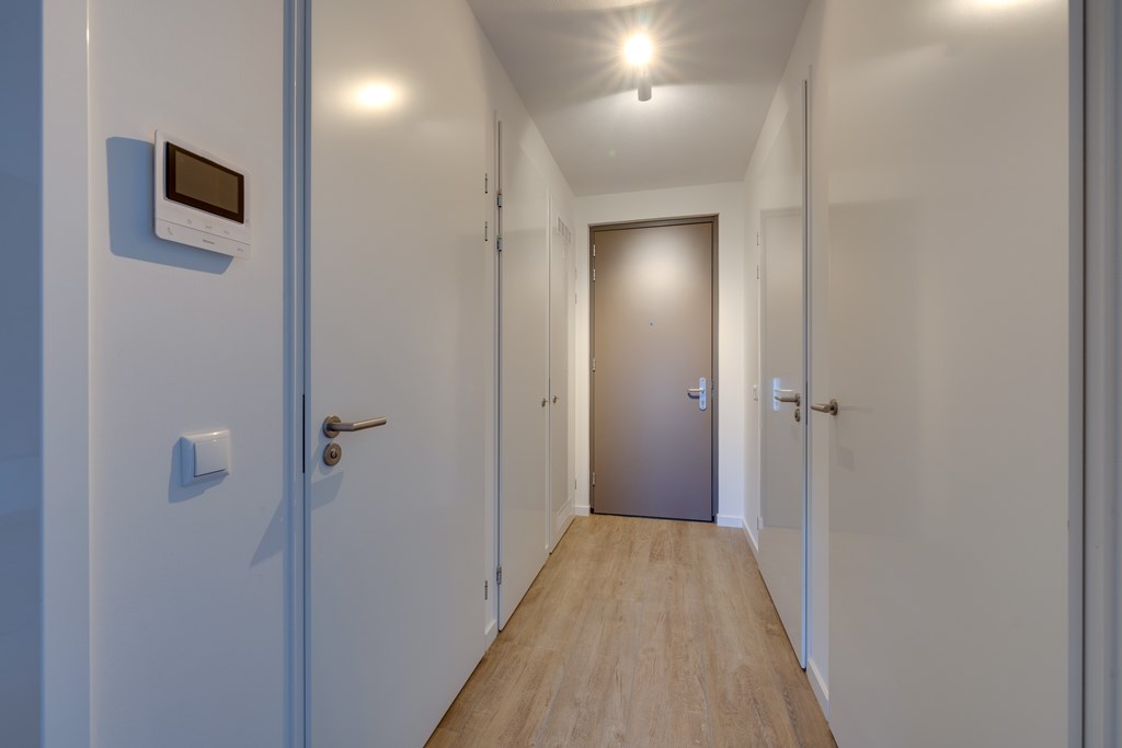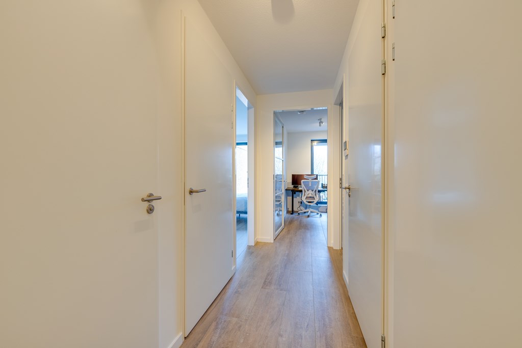 Via een centrale afgesloten hal komt u het appartement binnen. Vanaf het moment dat u binnenstapt, voelt u de kwaliteit en het goed doordachte ontwerp. De indeling is praktisch en ruim opgezet, met oog voor detail en functionaliteit.