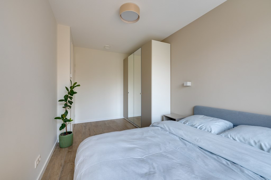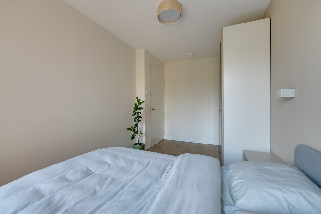 De hoofdslaapkamer bevindt zich aan de voorzijde van het appartement en biedt tevens een vrij uitzicht. De tweede slaapkamer heeft ook toegang tot het balkon en is ook uitstekend te gebruiken als werkkamer of logeerkamer.