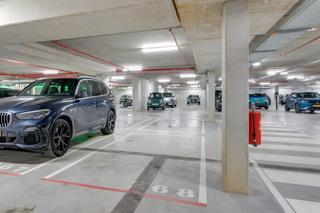In de onderbouw beschikt u over een eigen parkeerplaats in een beveiligde parkeergarage, toegankelijk via kentekenregistratie. Daarnaast zijn er drie gereserveerde fietsparkeerplaatsen beschikbaar.