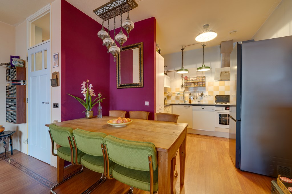 Schimmelstraat is located in the vibrant and trendy Bellamybuurt in Oud-West. The area is lively yet accessible, making it a highly desirable place to live. The street exudes a cozy urban atmosphere, with all amenities within walking distance. Supermarkets, specialty shops, bakeries, cafés, and restaurants are just around the corner. Daily errands or enjoying a terrace visit is convenient and easy. The popular Ten Kate Market and Foodhallen are also nearby.
