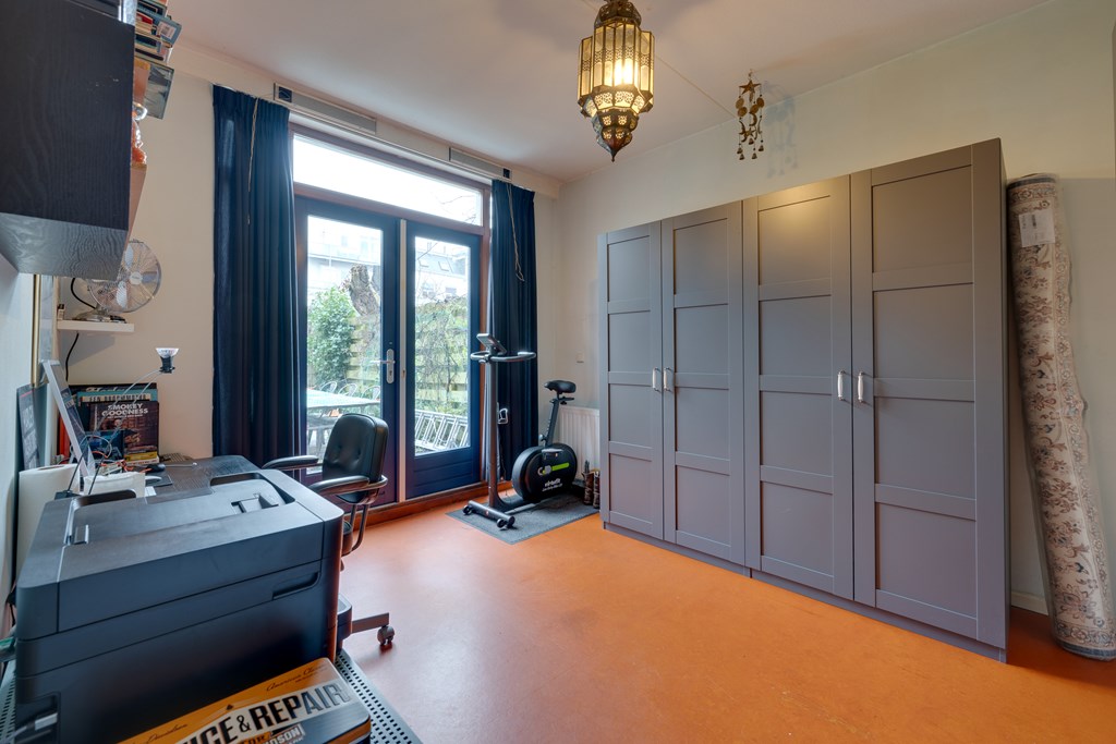 De derde slaapkamer in het souterrain biedt veelzijdige mogelijkheden. Gebruik deze ruimte als logeerkamer, kinderkamer, thuiskantoor, hobbykamer of zelfs als fitnessruimte.