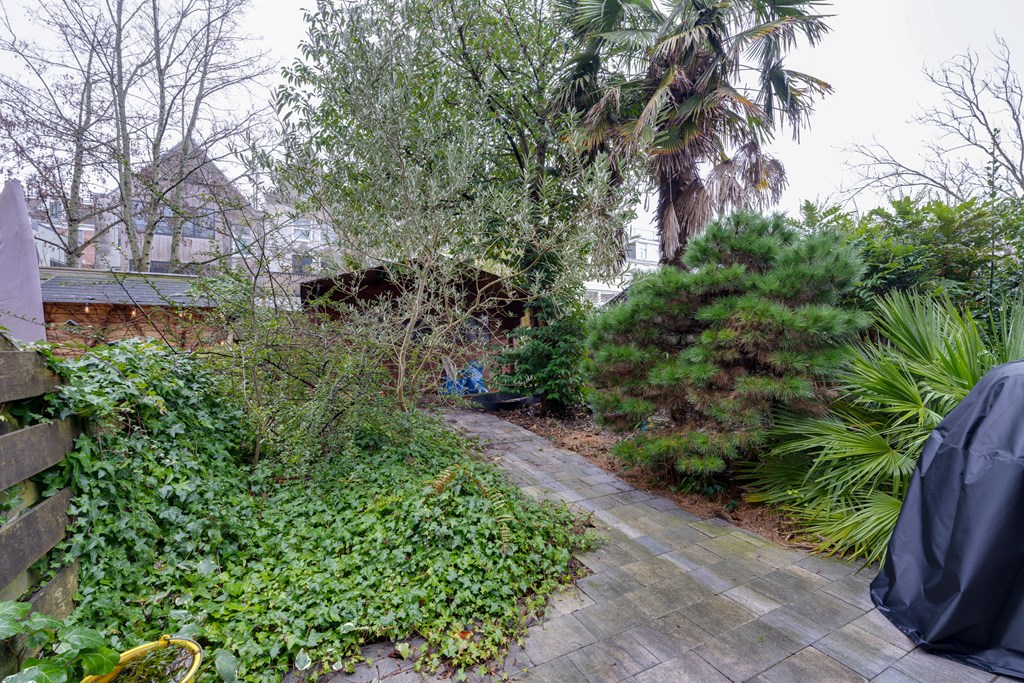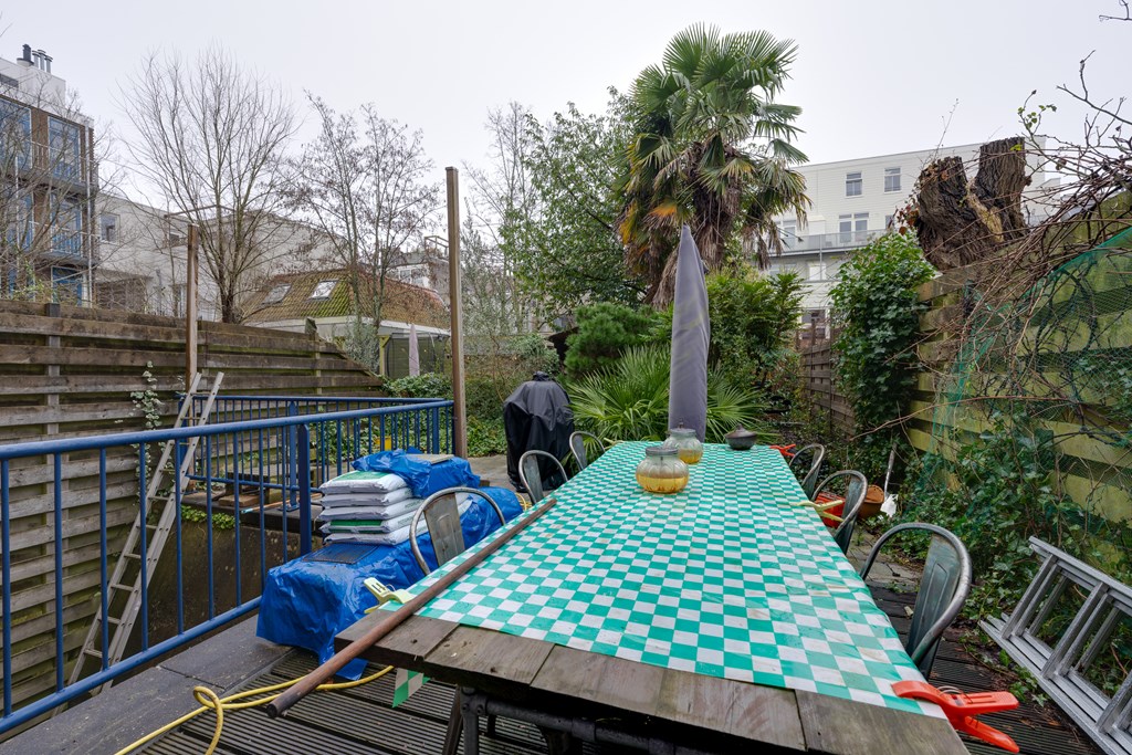 En dan het hoogtepunt: de ruime tuin op het zuiden. In Amsterdam is een eigen tuin al een luxe, maar een tuin op het zuiden is werkelijk uniek. Hier kun je optimaal genieten van de zon, van 's ochtends vroeg tot 's avonds laat. Of je nu houdt van tuinieren, buiten eten, een boek lezen in de zon of gewoon lekker luieren in een ligstoel, deze tuin biedt eindeloze mogelijkheden. Het is een groene oase midden in de stad, een plek waar je écht tot rust komt. Deze buitenruimte voegt enorm veel woonplezier toe en maakt de woning compleet.