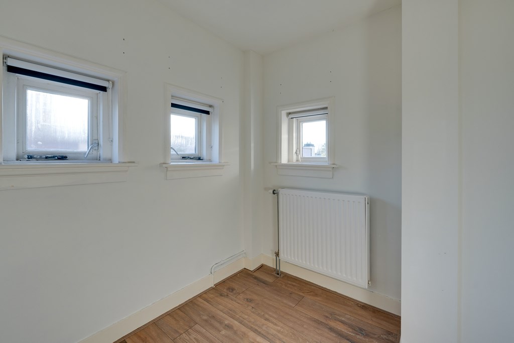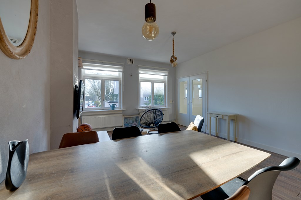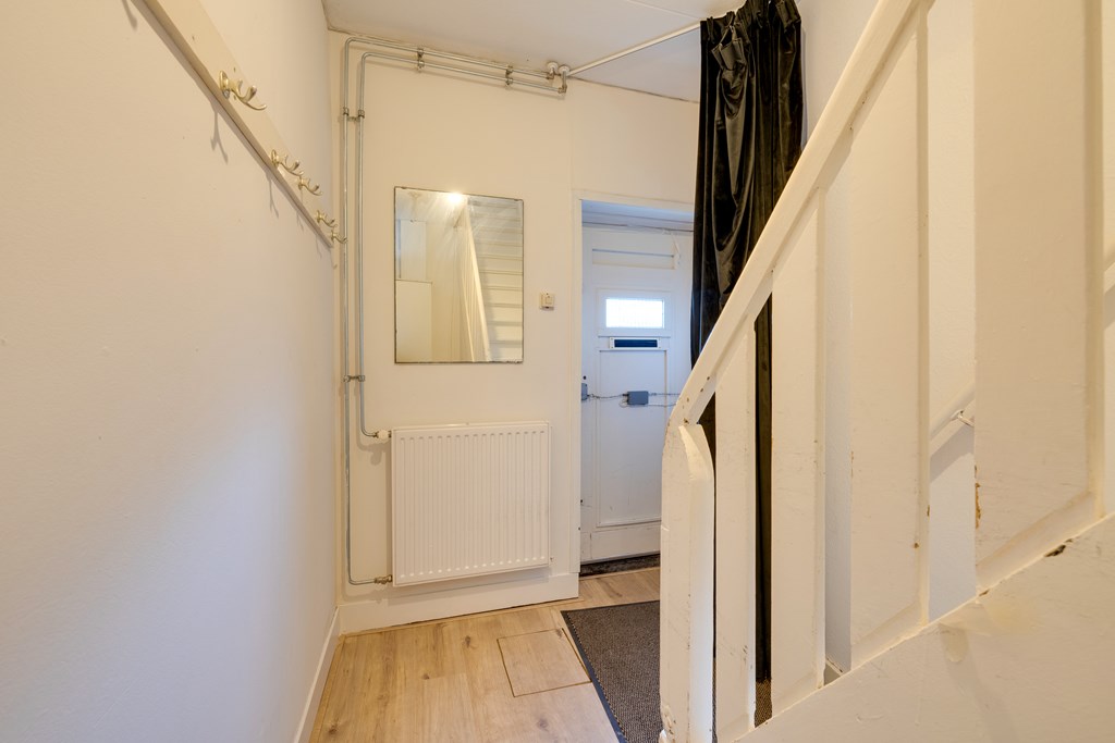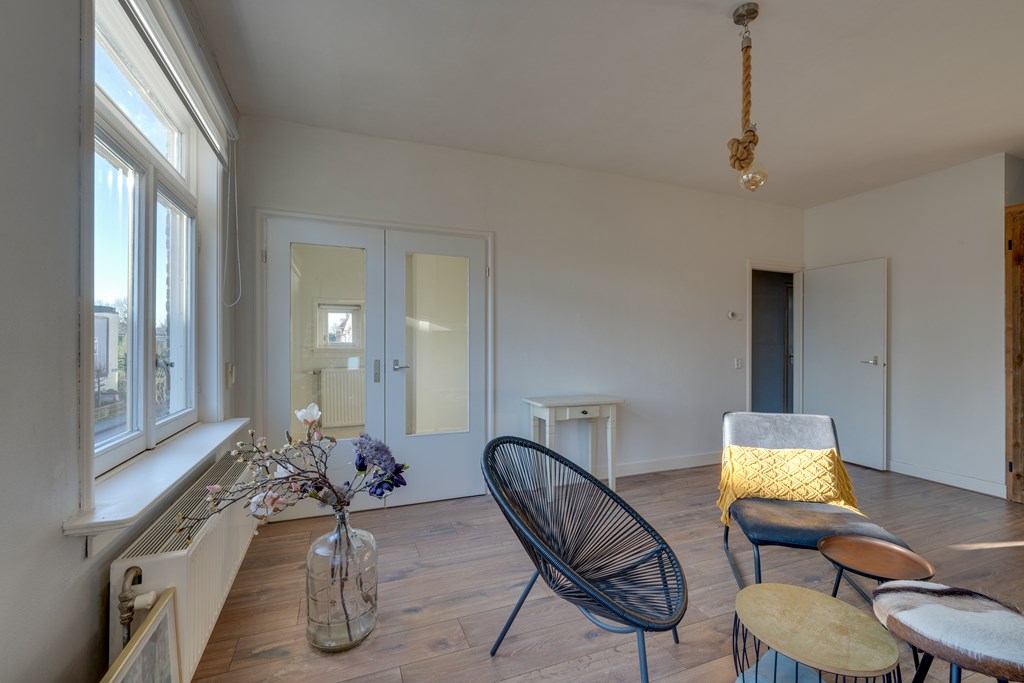 Via de eigen entree met bergingsruimte en meterkast bereik je middels de vaste trap de overloop van de verdieping. Aan de rechterzijde bevindt zich de deur naar de ruime en lichte woonkamer. Vanuit de woonkamer is er toegang tot een kleinere kamer aan de voorzijde, ideaal als werk- of slaapkamer.