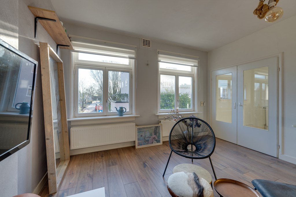 This characteristic apartment (built in 1925) is situated in Betondorp, a unique and popular neighbourhood in Amsterdam East. Betondorp is known for its spacious layout, abundant greenery, small squares, and quiet streets with a village-like atmosphere.