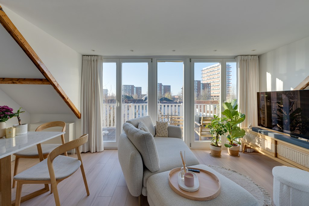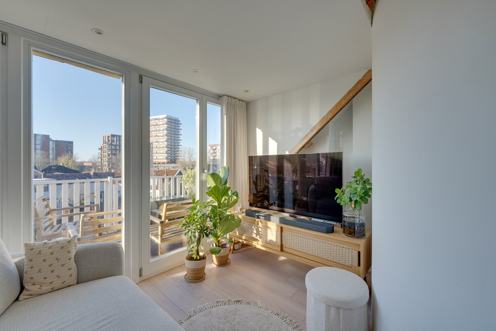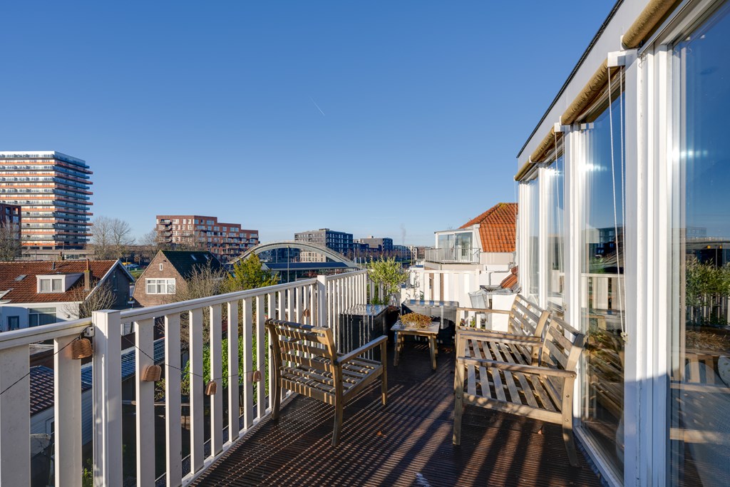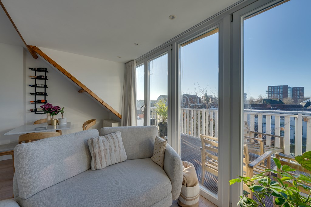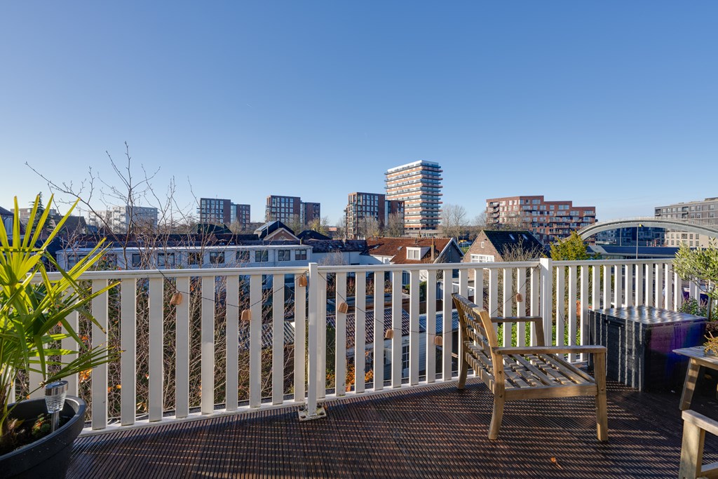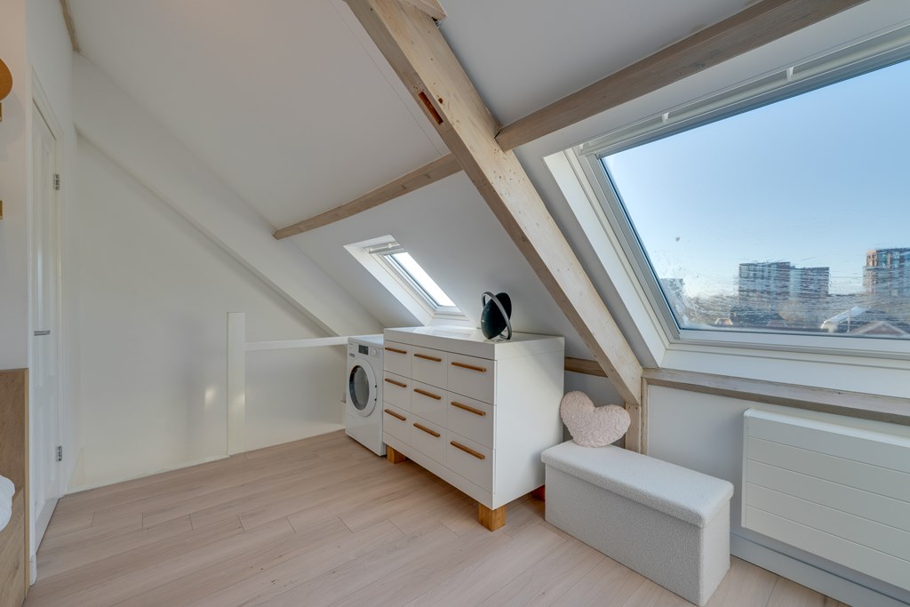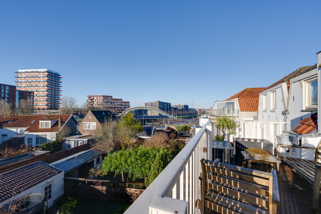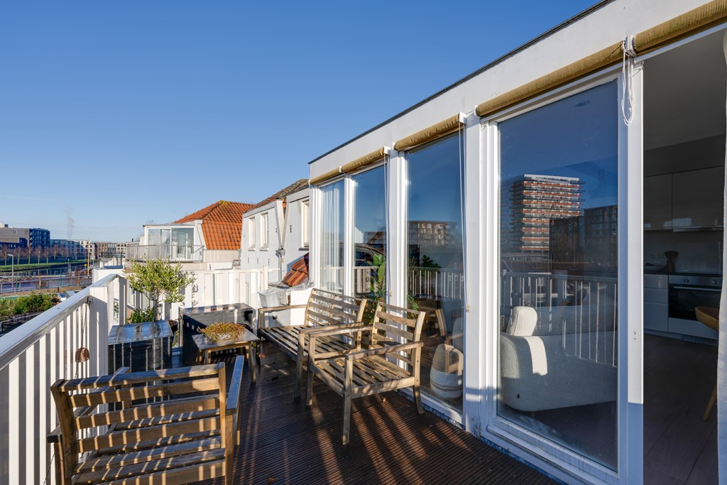 Het absolute hoogtepunt van deze woning is het royale dakterras. Deze unieke buitenruimte biedt alle gelegenheid om te ontspannen, te borrelen of gezellig te dineren in de buitenlucht. Dankzij de ligging boven de binnenstad heb je een vrij en verrassend wijds uitzicht over de daken van Purmerend. In de zomer is dit een heerlijke plek om te genieten van de avondzon, terwijl het terras ook in het voor- en najaar volop mogelijkheden biedt voor een knusse zithoek.