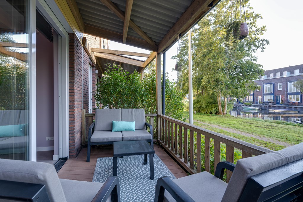 Het royale dakterras grenst aan de woonkamer en beschikt over een vlonder en heerlijk terras waar je veel gezellige dagen en avonden kunt doorbrengen. Ook heeft het terras een elektrisch zonnescherm voor de warmere zomerdagen. Aan de voorkant van de woning heb je de beschikking over een voortuin met overkapping en kijk je heerlijk uit over een groenstrook aan het vaarwater.