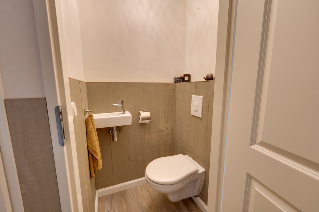 De keuken is voorzien van een kookeiland met Bora-kookplaat met geïntegreerd afzuigsysteem, vaatwasser, oven, koelkast, vriezer en Quooker. Het geheel is afgewerkt met een stijlvol composiet aanrechtblad en biedt volop opbergruimte. De keuken vormt het hart van de woning – een plek om samen te koken, eten, werken of gewoon gezellig bij te praten. Via de tuindeur toegang tot de tuin.