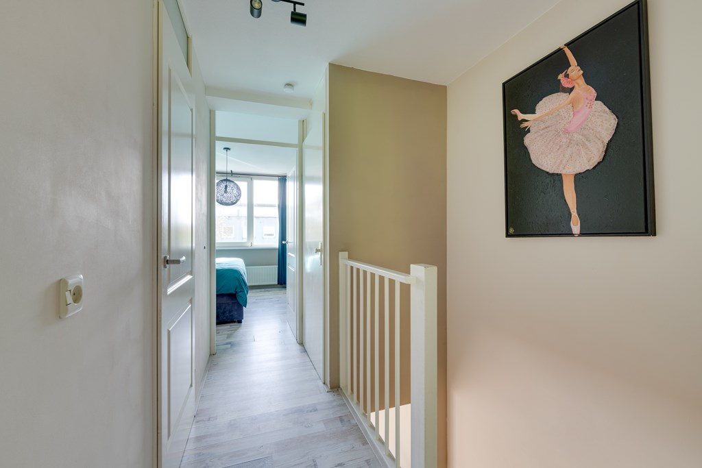 Voorheen bevond zich op deze verdieping een extra slaapkamer; deze kan desgewenst eenvoudig worden teruggebracht. Laat je het zoals het is, dan beschik je over een royale, lichte woonkamer met volop mogelijkheden. De trapopgang zorgt bovendien voor een natuurlijke tweedeling, waardoor je makkelijk een aparte zithoek, werkplek, hobbyruimte of tv-kamer kunt creëren.