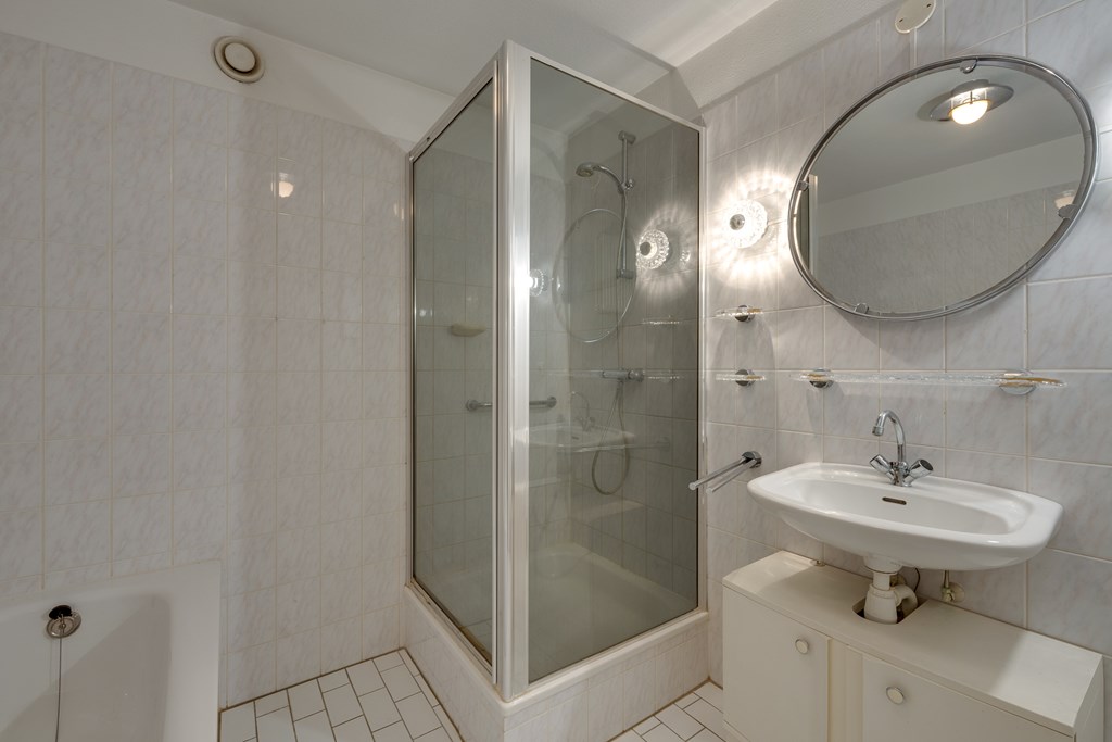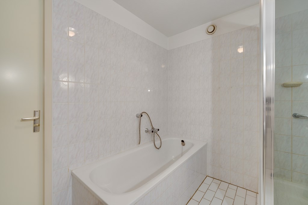 Aan de achterzijde van het appartement liggen twee goed bemeten slaapkamers. De ruime badkamer beschikt over een inloopdouche, ligbad, wastafelmeubel en wandkast. Tegenover de badkamer bevindt zich het separate toilet.