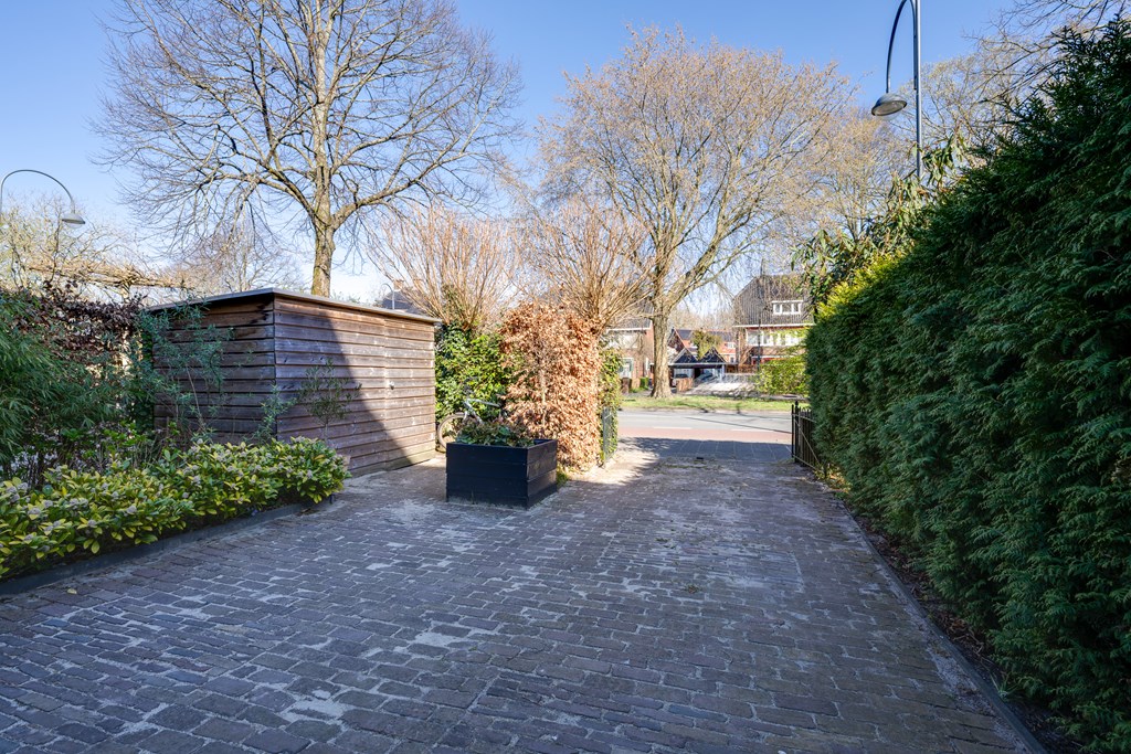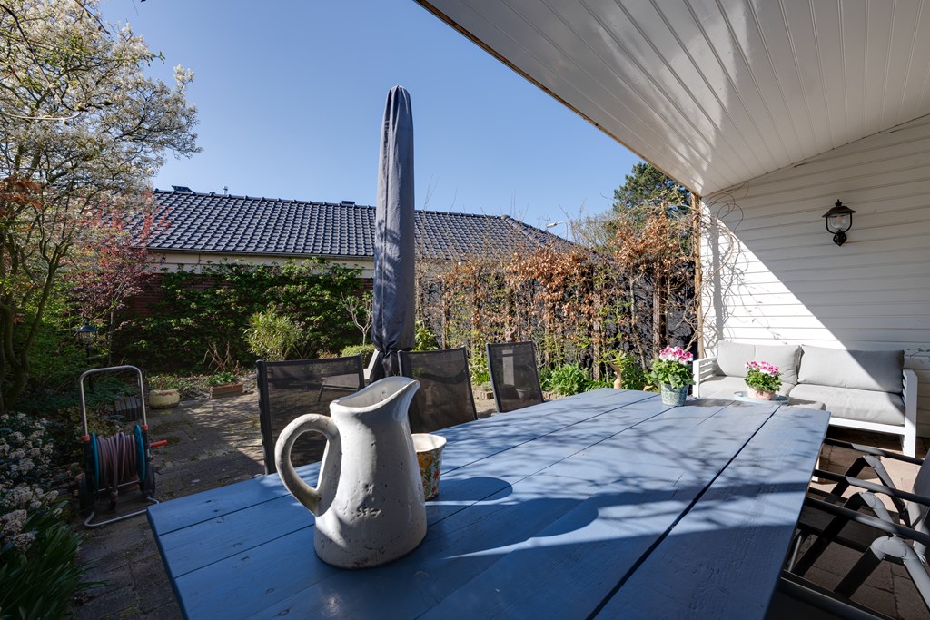 De woning beschikt over een verzorgde voortuin met oprit voor twee auto’s en mogelijkheid voor een laadpaal. De zonnige achtertuin ligt op het westen en is voorzien van een gezellige overkapping (2017), zodat je het hele jaar door van het buitenleven kunt genieten.