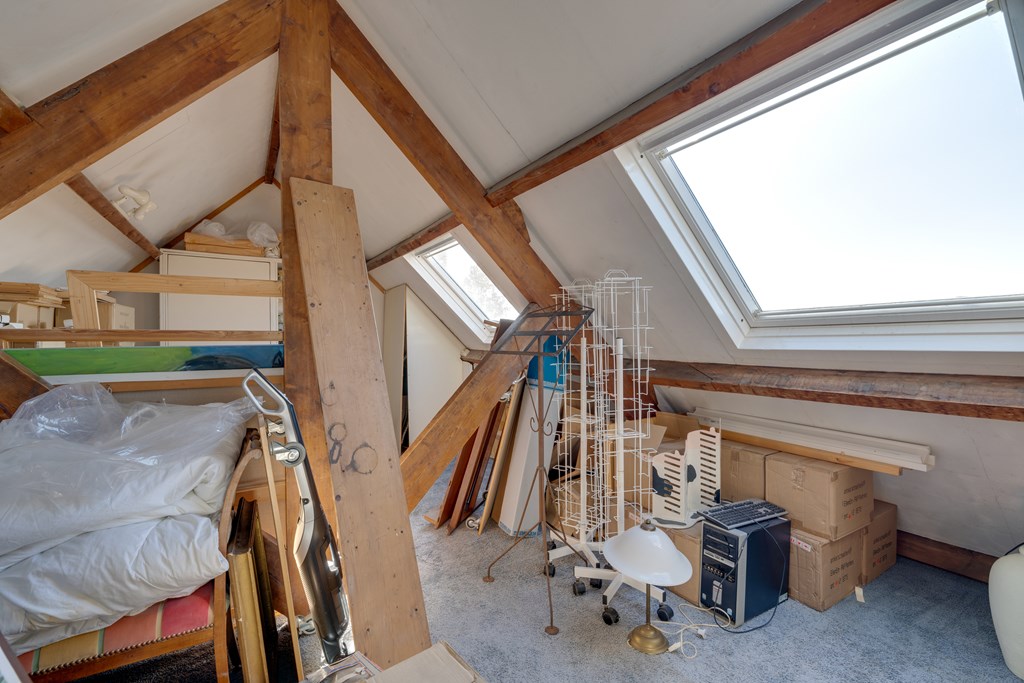 Derde etage: zesde slaapkamer met twee dakramen en de cv-installatie.