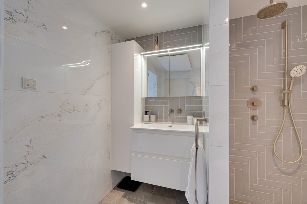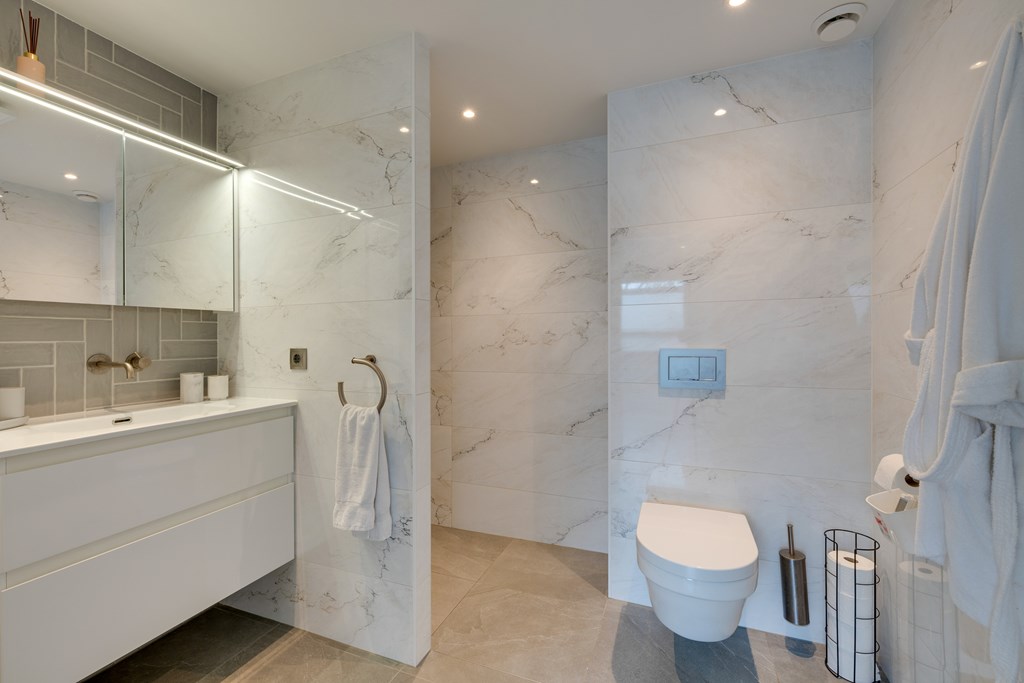 Op de eerste verdieping bevinden zich twee royale slaapkamers, de luxe badkamer met inloopdouche, wastafelmeubel, toilet en infraroodverwarming, en een praktische en riante wasruimte.