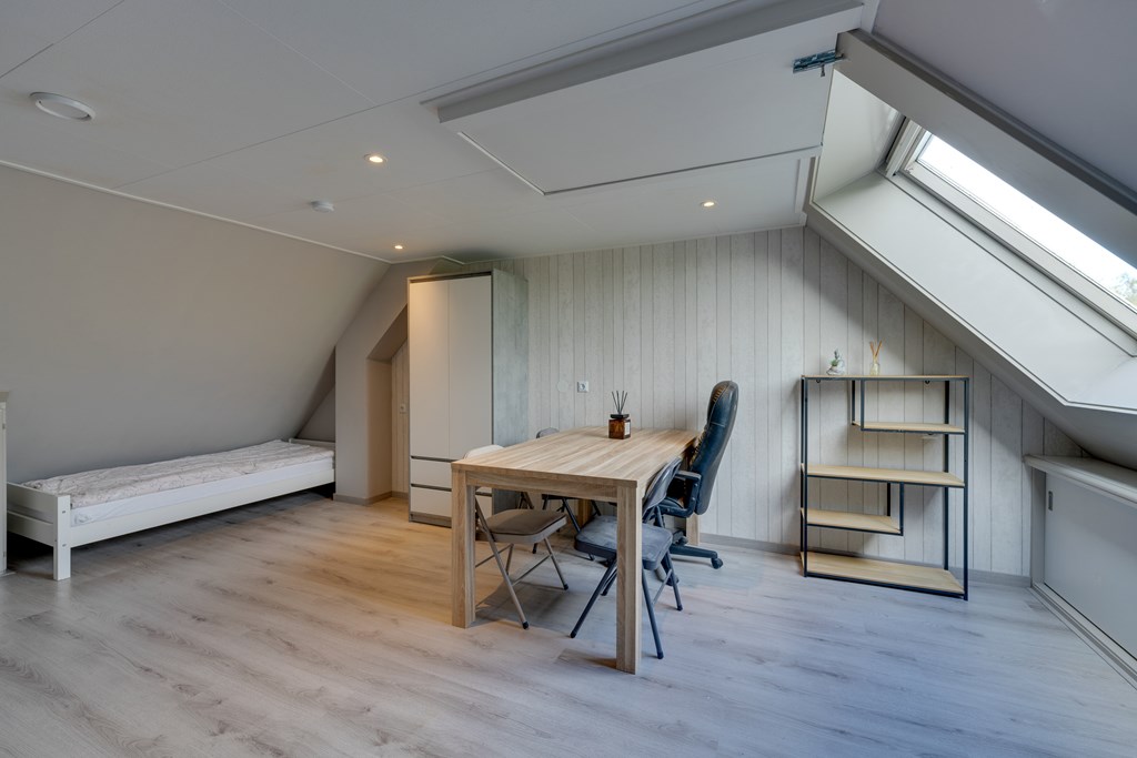 De tweede verdieping biedt een derde slaapkamer en veel bergruimte.