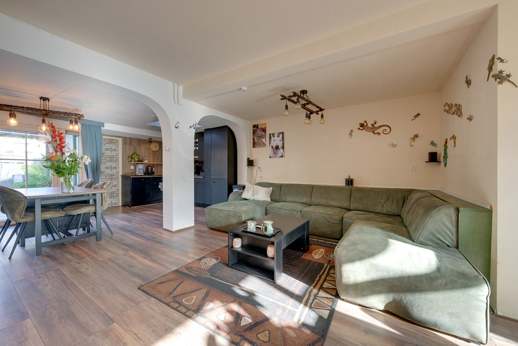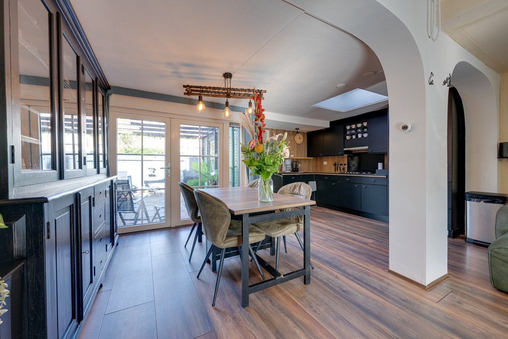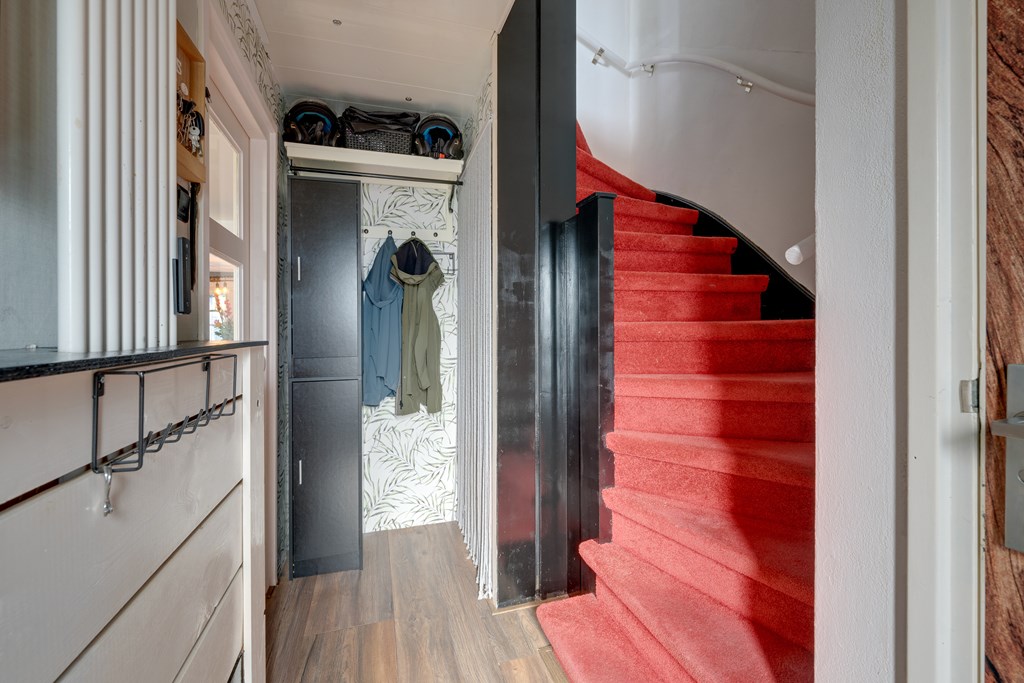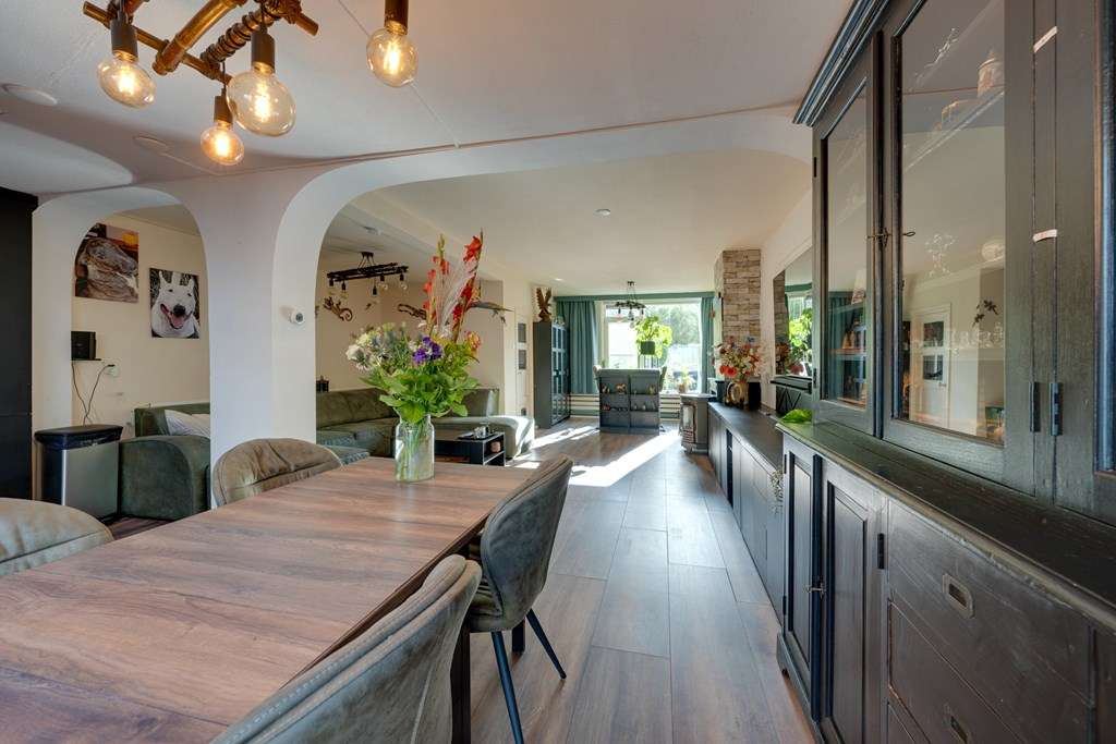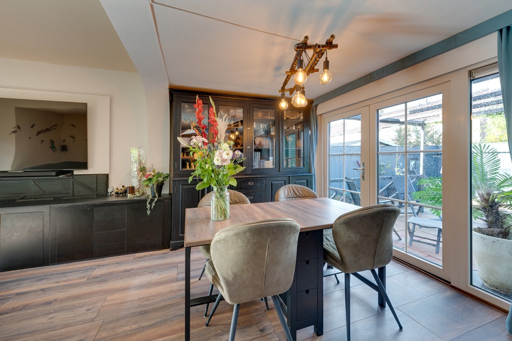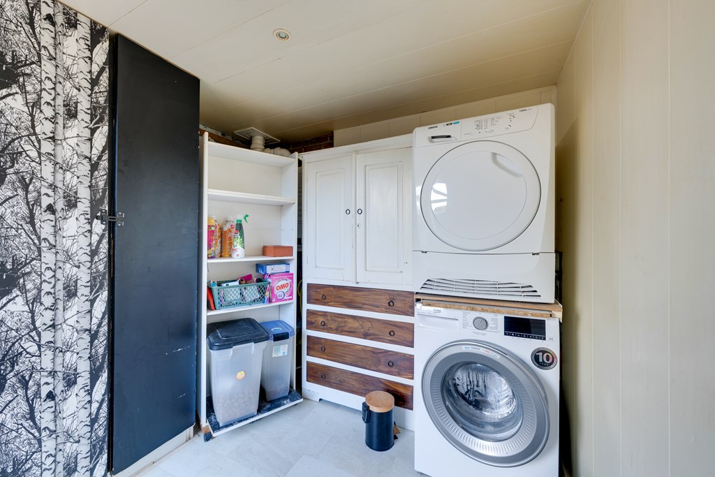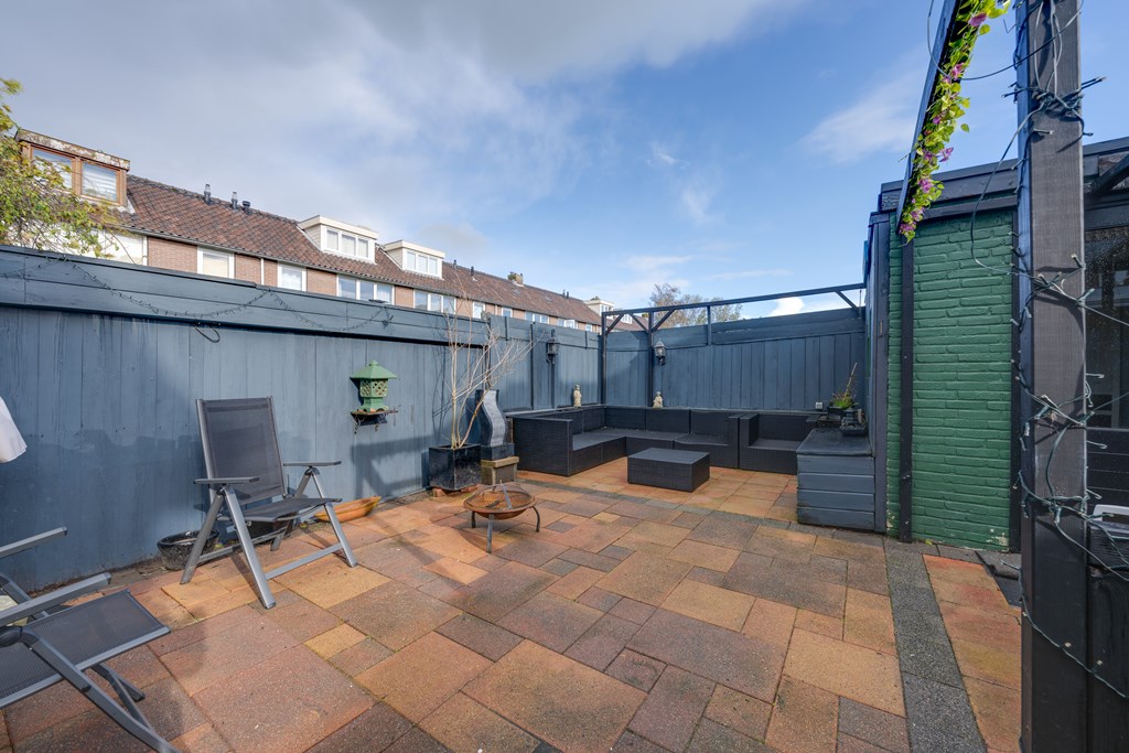 De ruime achtertuin ligt gunstig op de zon en biedt volop privacy. Dankzij de hoekligging is er extra buitenruimte aan de zijkant van de woning, ideaal voor tuinliefhebbers of om een fijne zithoek te creëren. Naast de woning bevindt zich een schuur voor fietsen en tuingereedschap, en er is een achterom aanwezig.