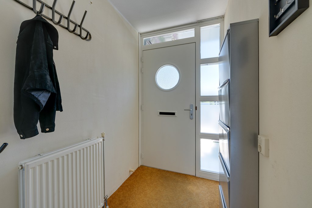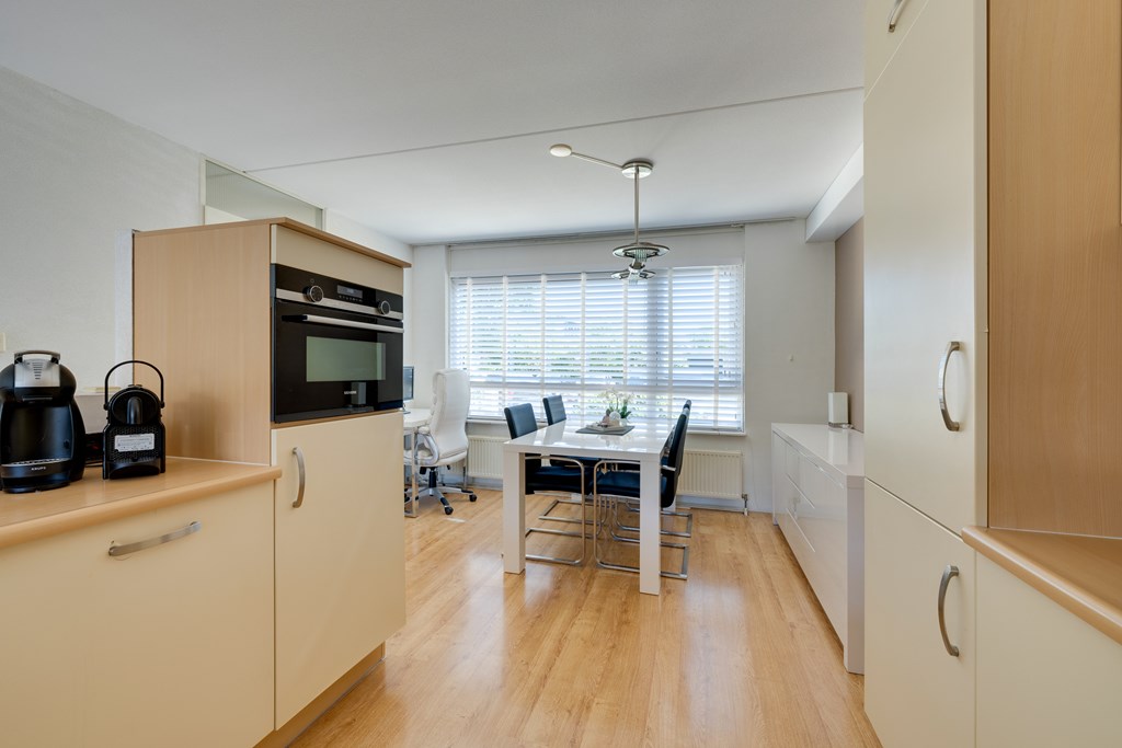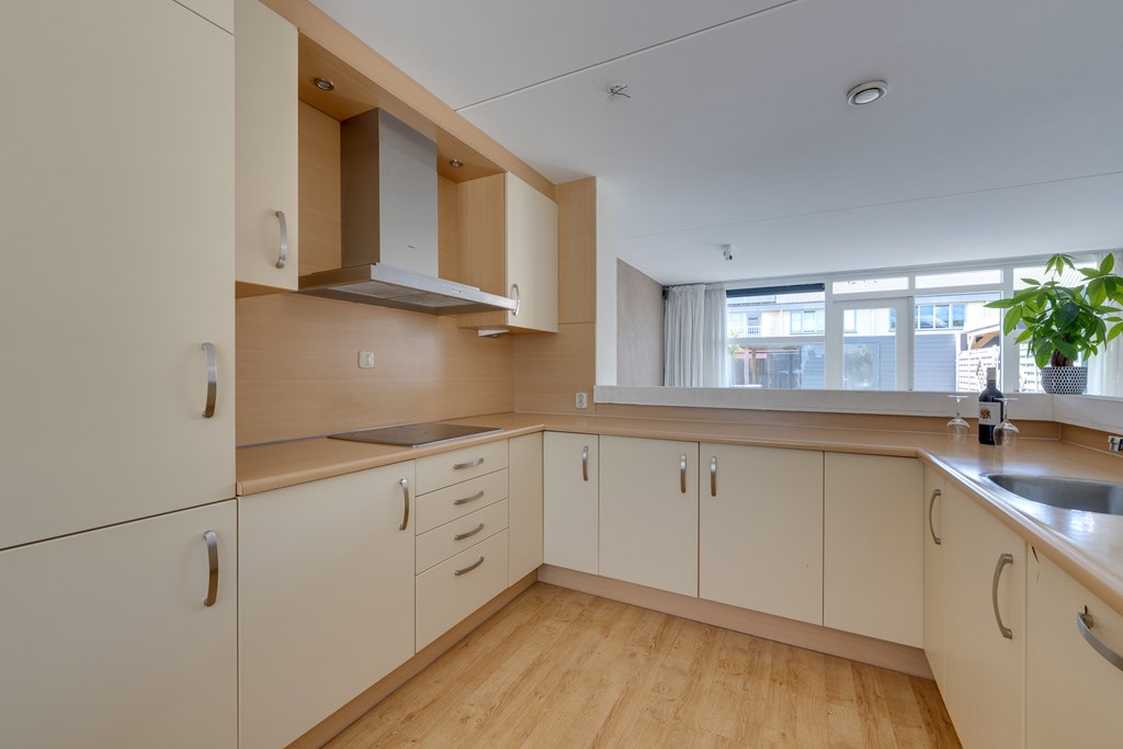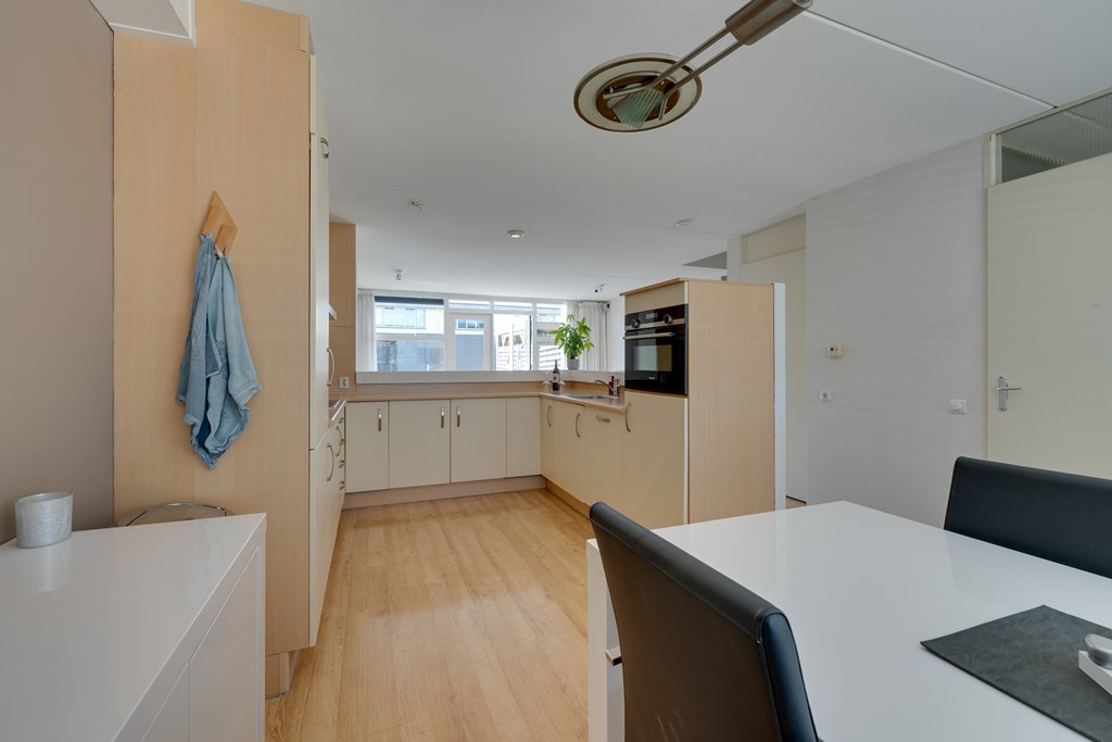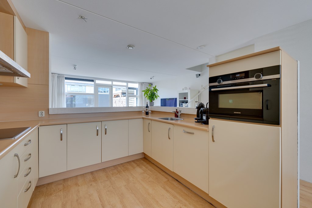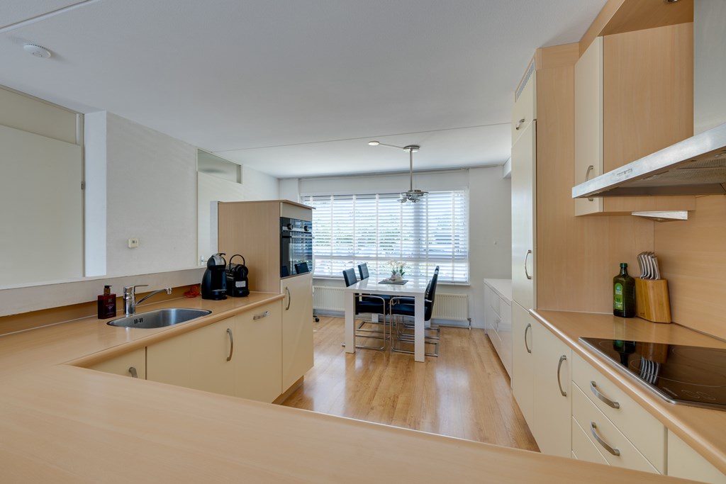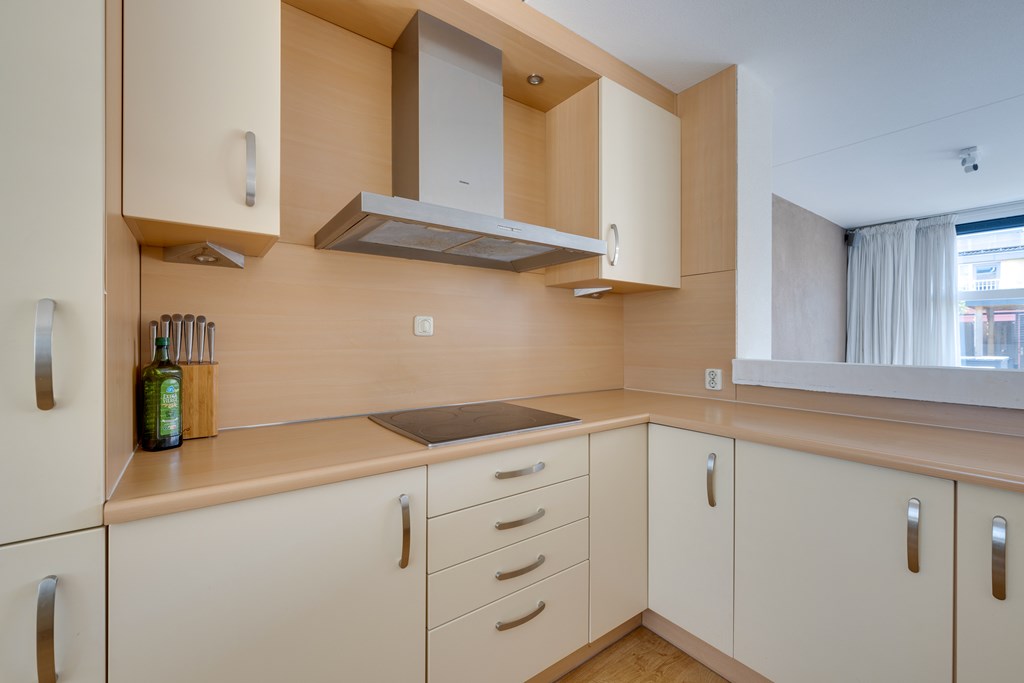 Bij binnenkomst stap je direct de hal in waar je het nette toilet en de meterkast vindt. Hierna betreed je de woonkamer. De open keuken beschikt over een praktische U-vormige opstelling, waar alle benodigde inbouwapparatuur aanwezig is en ook nog voldoende ruimte is voor een eethoek. Er ligt een nette laminaatvloer en de wanden zijn voorzien van spachtelputz. Door de openslaande deuren naar de tuin ontstaat er een directe verbinding tussen binnen en buiten.