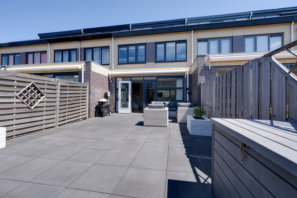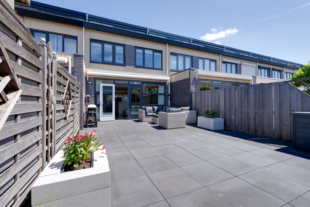 Via de openslaande deuren van de woonkamer, kom je in de geweldige onderhoudsvriendelijke tuin, welke is gelegen op het zonnige zuidwesten.