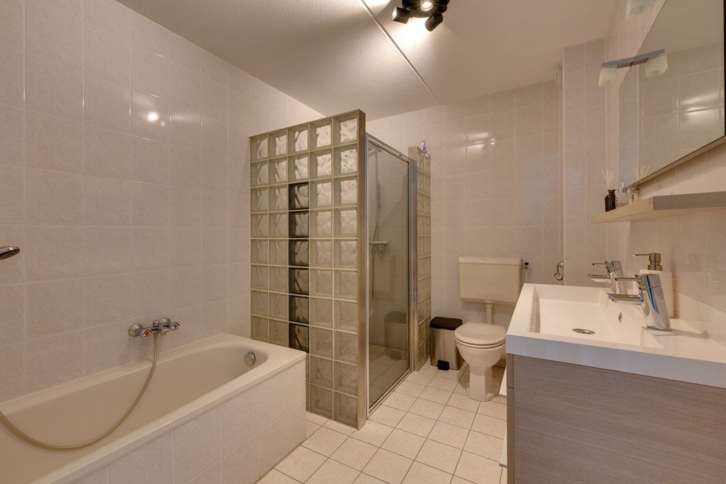 Op deze verdieping bevinden zich drie volwaardige slaapkamers: een ruime ouder slaapkamer en twee goed bemeten andere slaapkamers, ideaal voor kinderen of als extra ruimte. De nette badkamer is tot het plafond betegeld en voorzien van een douche, ligbad, wastafel met meubel en een tweede toilet.