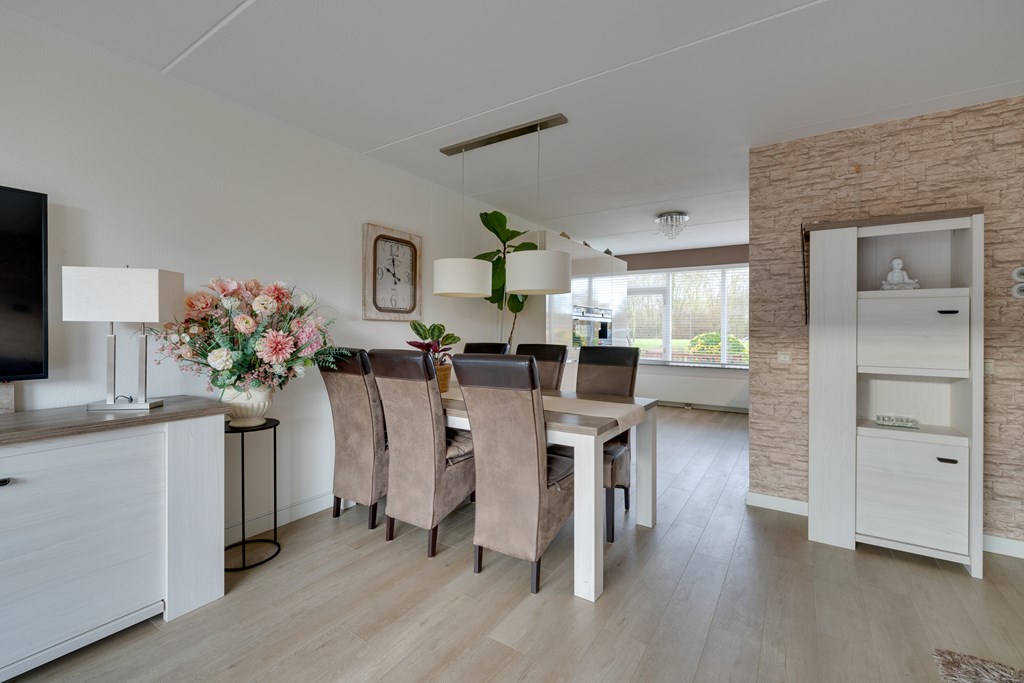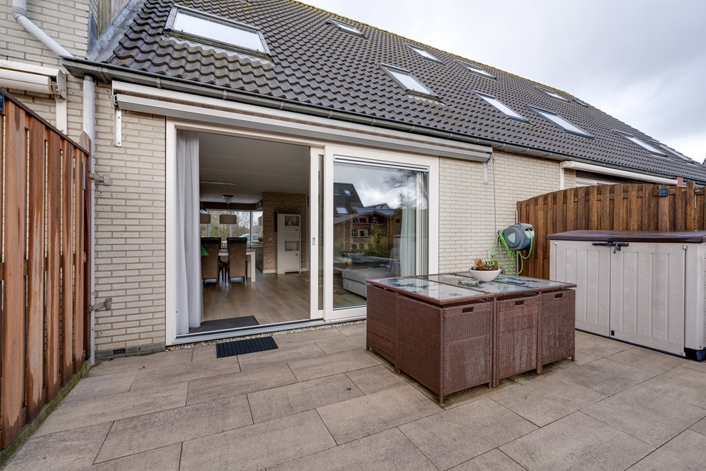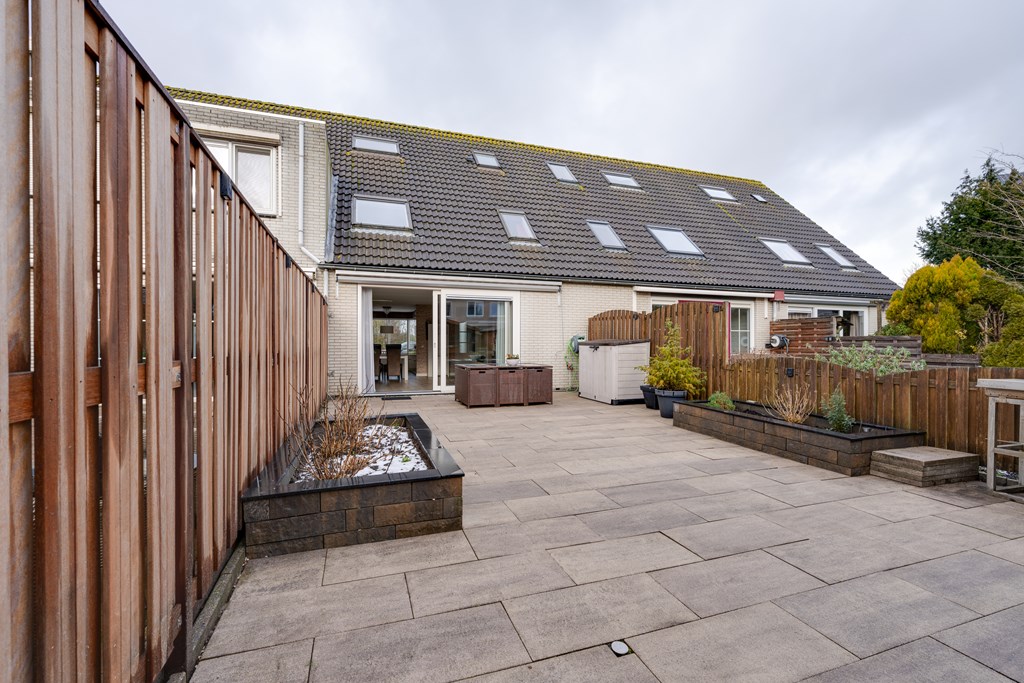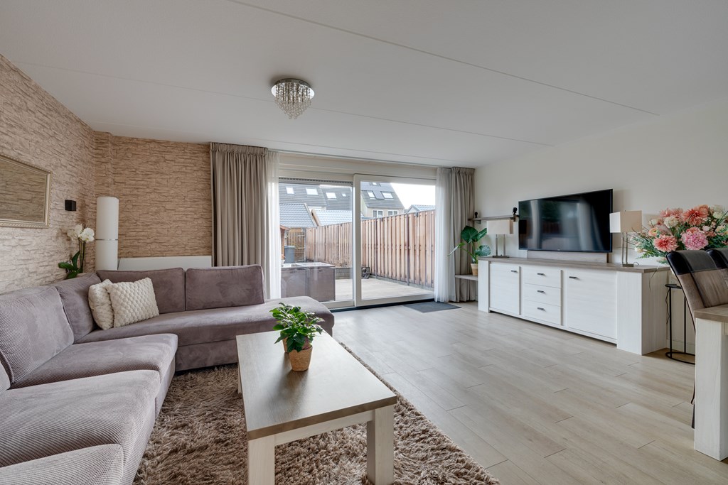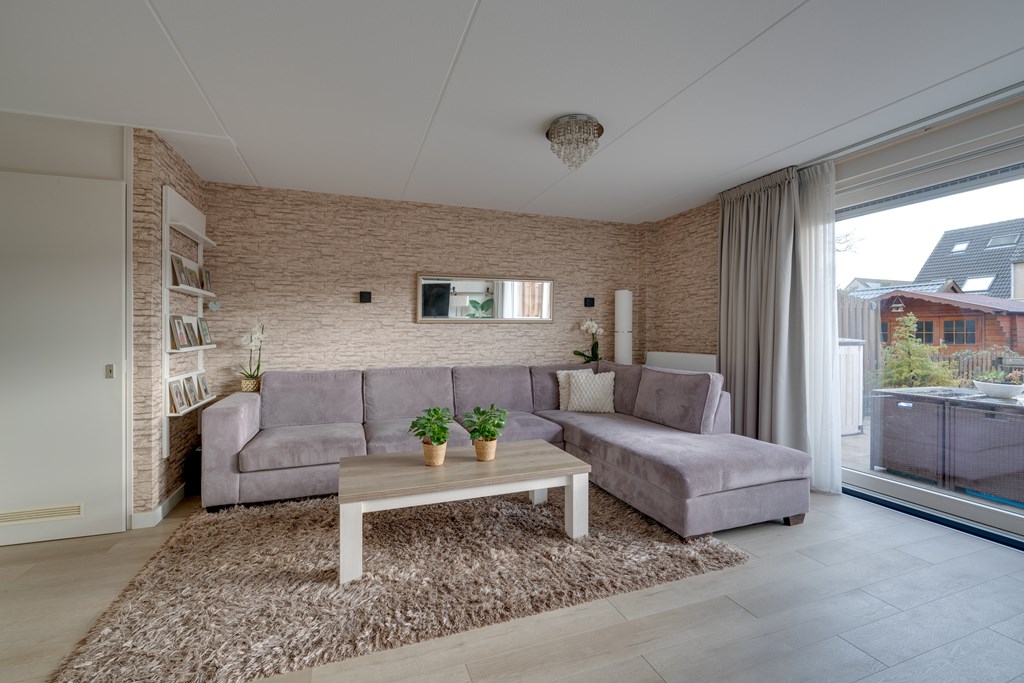 Via de woonkamer bereik je de riante achtertuin op het zuidoosten. Door de diepte van de tuin is er altijd wel een plek in de zon of schaduw te vinden.