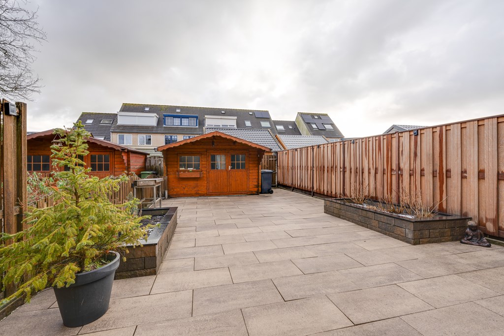De tuin is netjes aangelegd en biedt volop ruimte voor een loungehoek, speelruimte of tuinieren en beschikt ook over een ruime schuur.