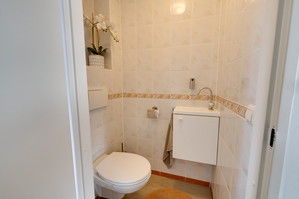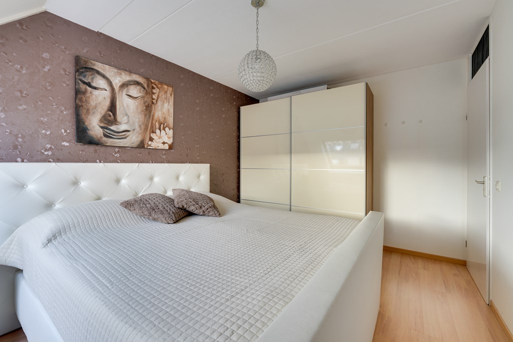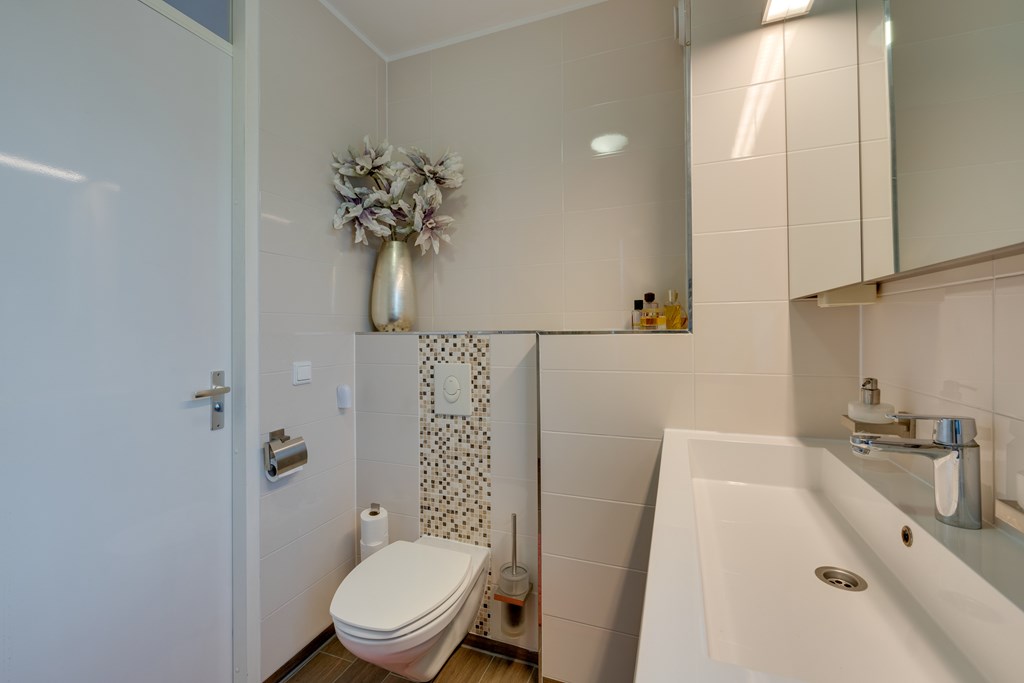 Op de eerste verdieping tref je drie goed bemeten slaapkamers en een fraaie badkamer. De badkamer uit 2018 is compleet uitgevoerd met een inloopdouche, wastafelmeubel en tweede toilet. De afwerking is stijlvol en tijdloos, waardoor je hier direct van kunt genieten zonder te hoeven verbouwen. De kamers beschikken over een nette laminaatvloer.