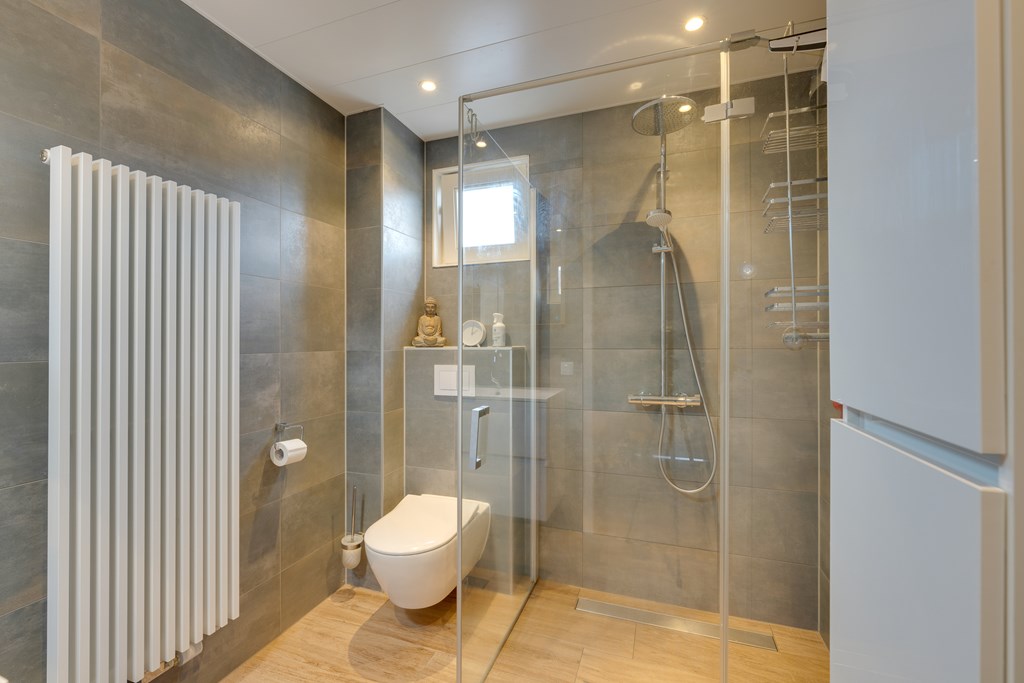 Op de eerste verdieping bevinden zich twee ruime slaapkamers, waarvan één is voorzien van een brede dakkapel. De moderne badkamer is in 2019 volledig gerenoveerd en uitgerust met een inloopdouche, wastafelmeubel en tweede toilet.