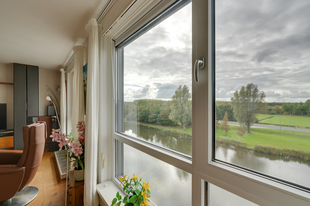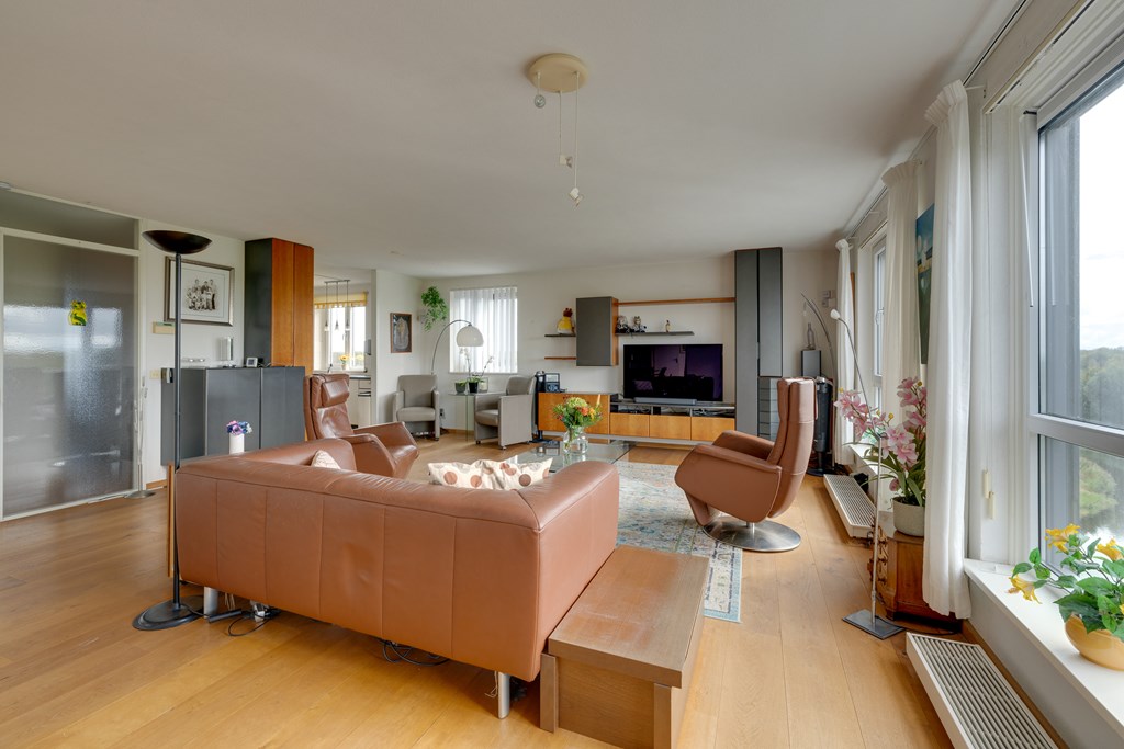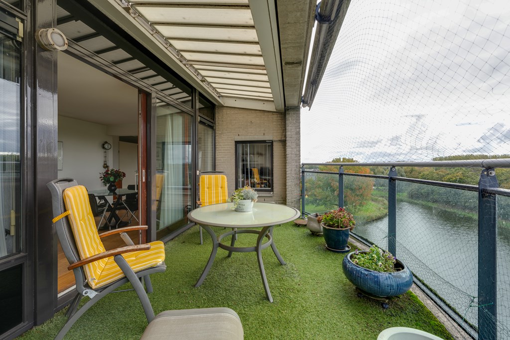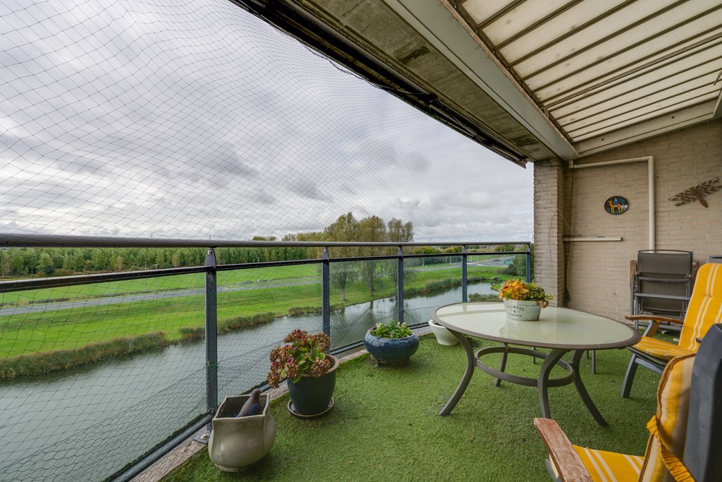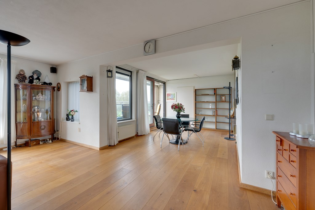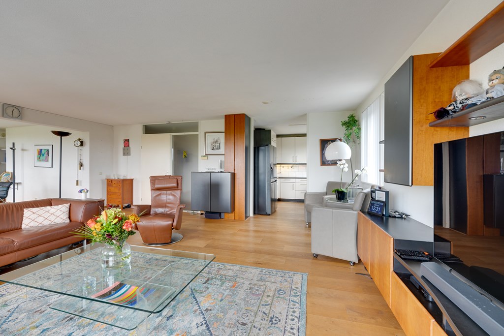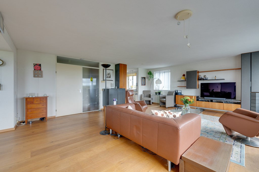Vanuit de woonkamer en het brede balkon kijk je kilometers ver, tot aan Amsterdam en Monnickendam. Hier woon je letterlijk boven alles, met volop licht en privacy.