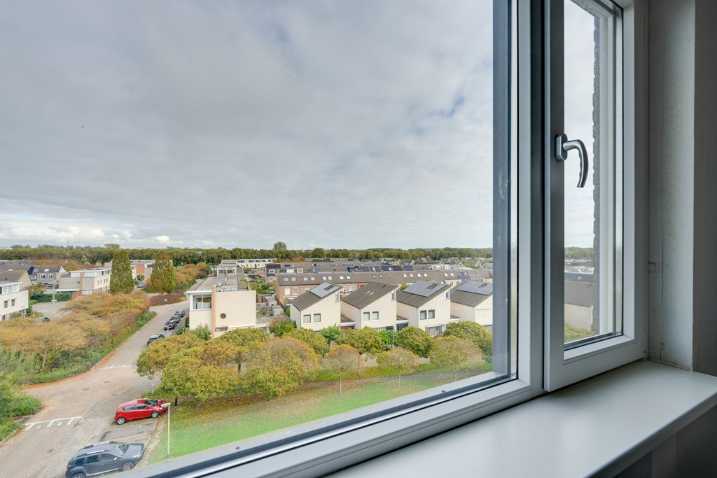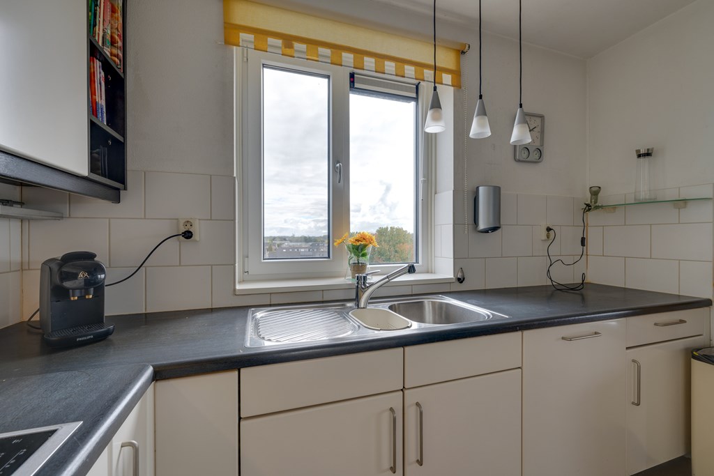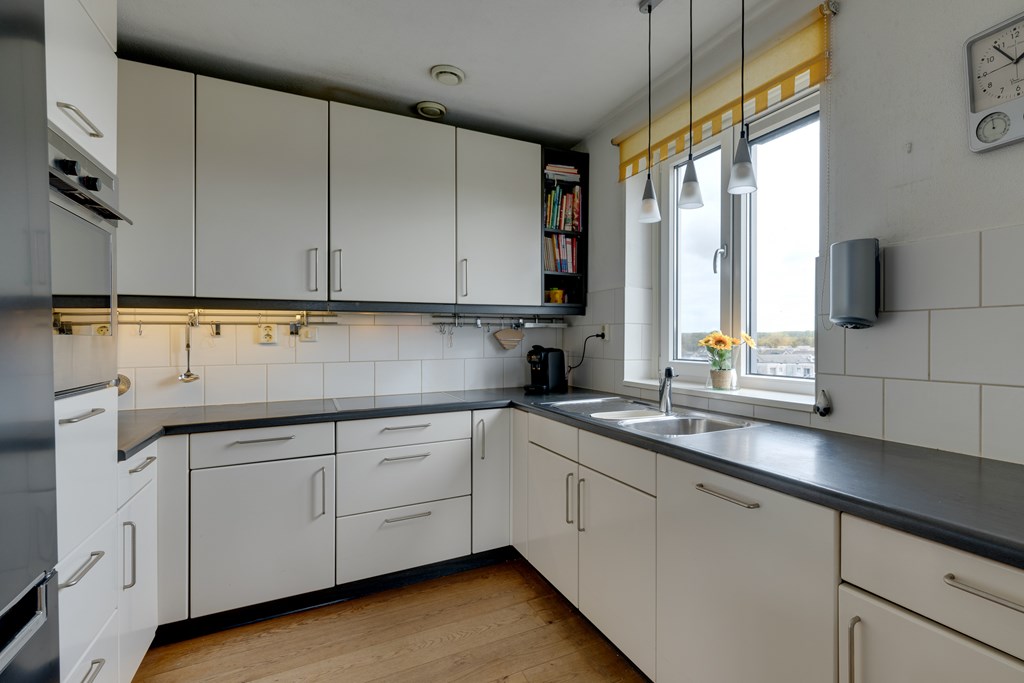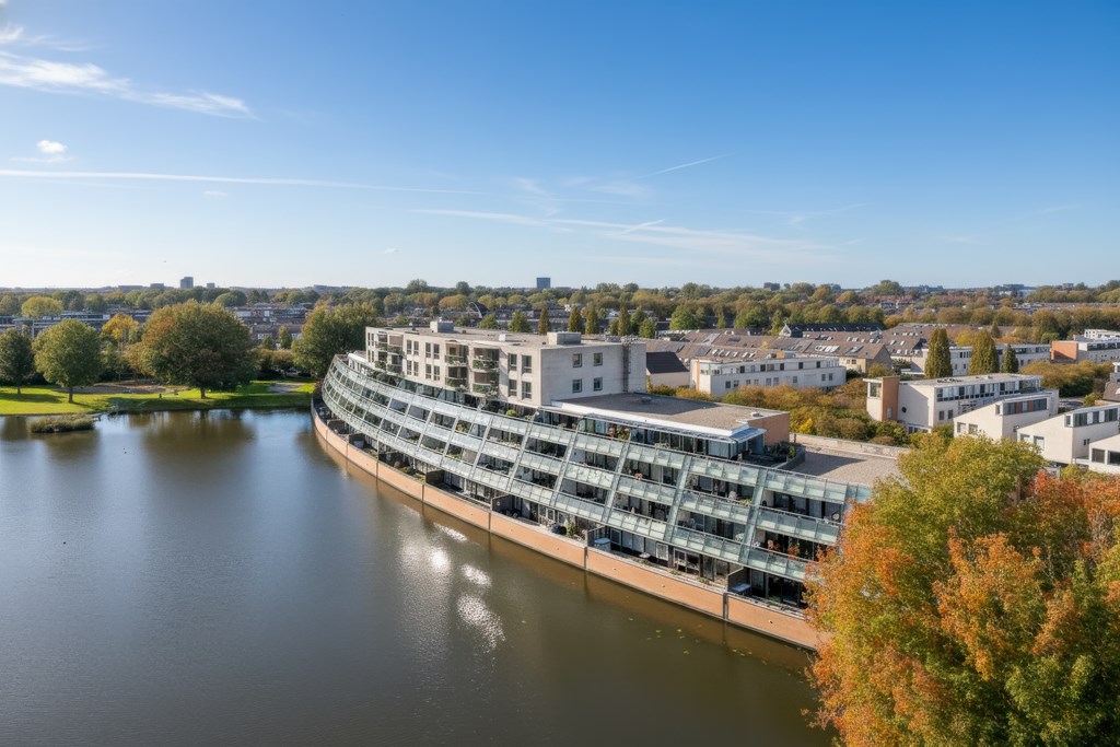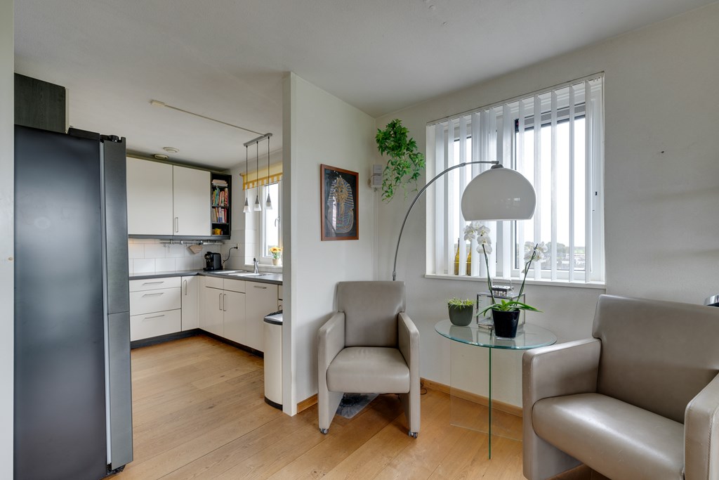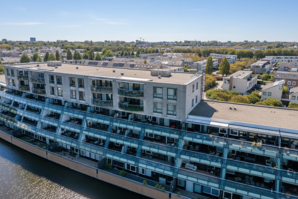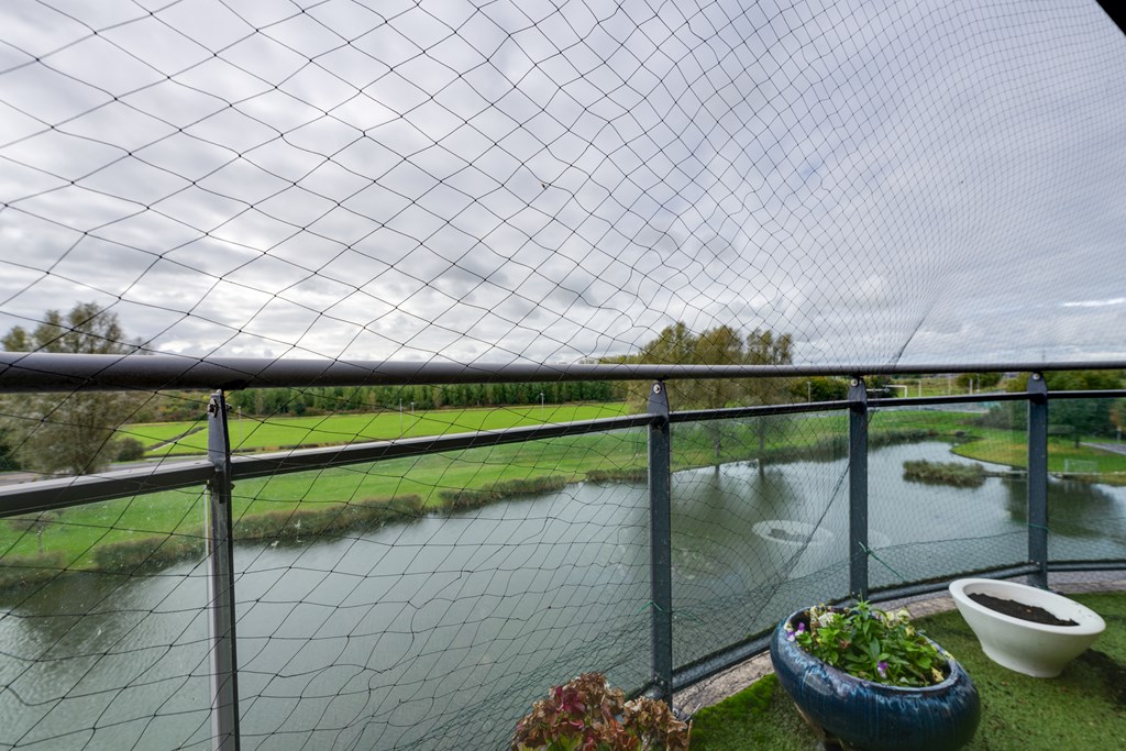 Vanuit de woonkamer en het brede balkon kijk je kilometers ver, tot aan Amsterdam en Monnickendam. Hier woon je letterlijk boven alles, met volop licht en privacy.